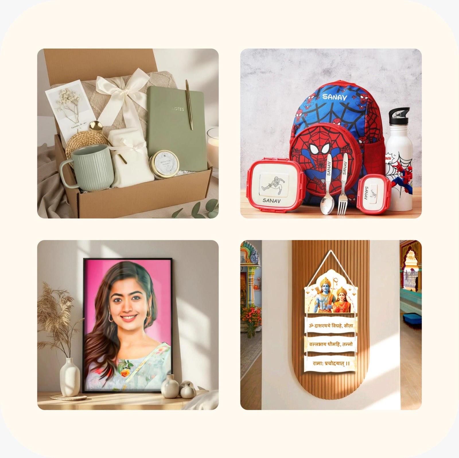 Our top trending products include the Premanand Maharaj Wall Hanger, Customized Perfume, Jewellery Travel Case, Personalized Pencils, Beauty Gift Sets, and Car Hangers, which are highly loved by our customers for their uniqueness and quality.