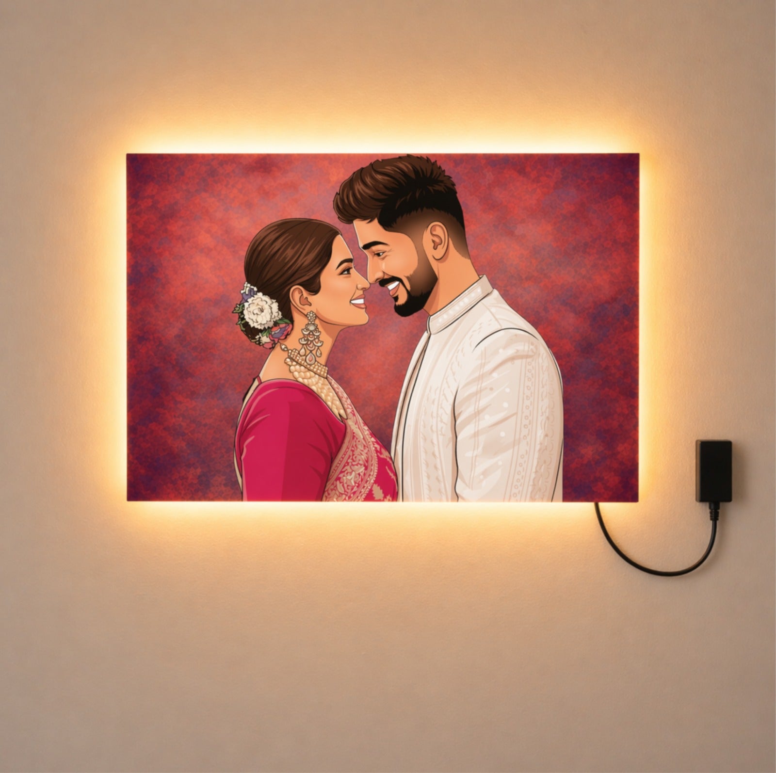 Personalized LED Acrylic Wedding Couple Cartoon Wall Frame (24x36")