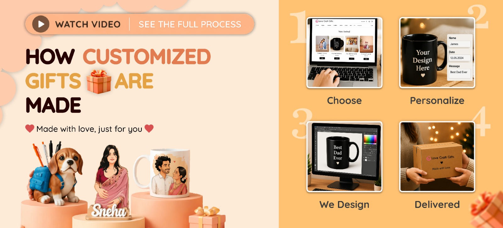 With India's #1 Online Exclusive Shop - Love Craft Gifts, you can easily customize your orders. You can do it according to the person or couple that yo're celebrating. Wheather it be a special anniversary gift, a personalized present for your best friend, or for your girlfriend/boyfriend on valentines. In other words, If you are looking for just even something fun and exciting to make someone smile, we've got it all for you. With our easy-to-use customization tools, you can personalize any item to make it truly unique and special.
