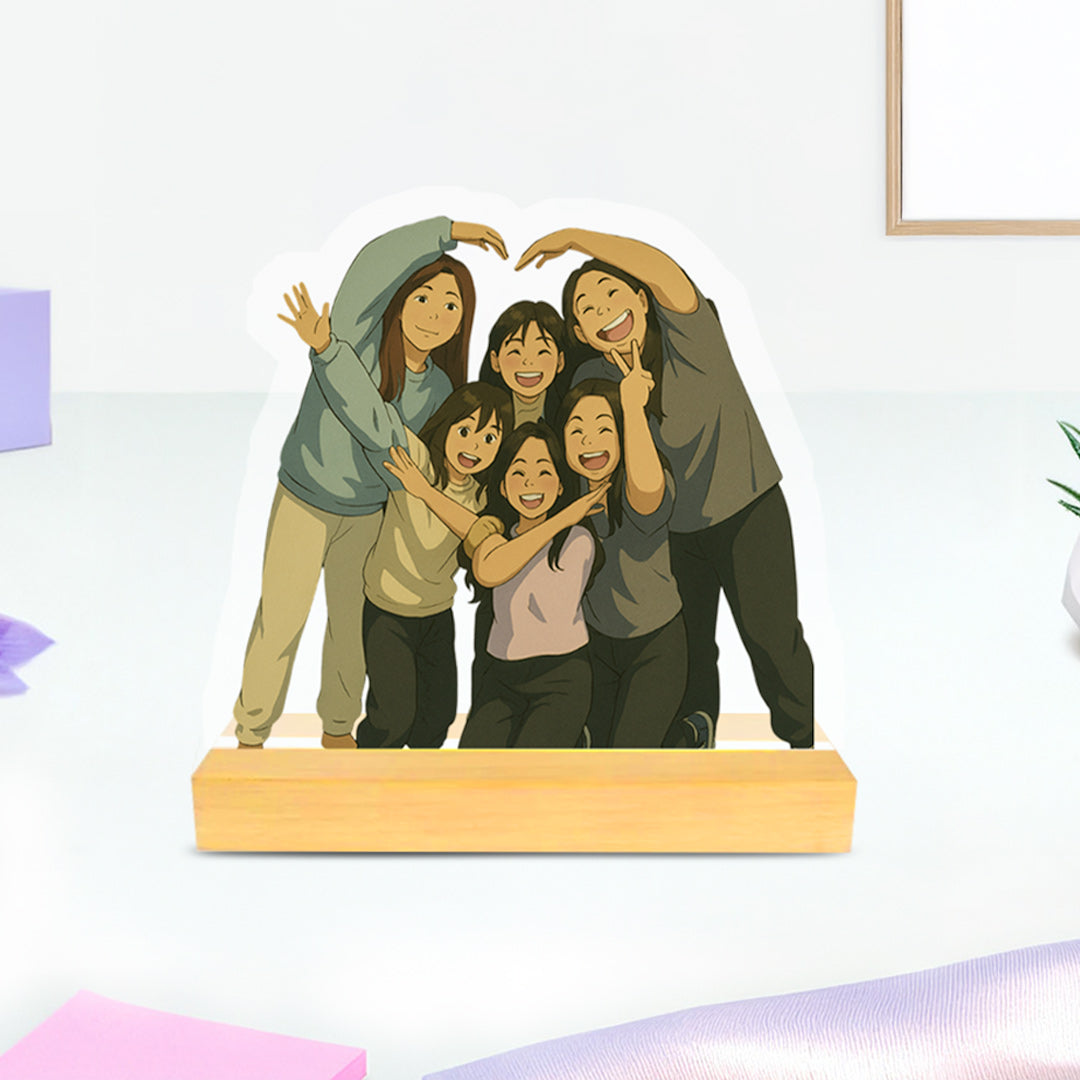 Bring your memories to life in a magical Ghibli-inspired style! This Personalized Ghibli Art Table Stand transforms your photo into beautiful anime artwork, printed on a premium 6-inch acrylic frame with a wooden base. Whether it’s you and your loved ones, a group of friends, or just a solo portrait, it’s a one-of-a-kind keepsake you’ll love to display.