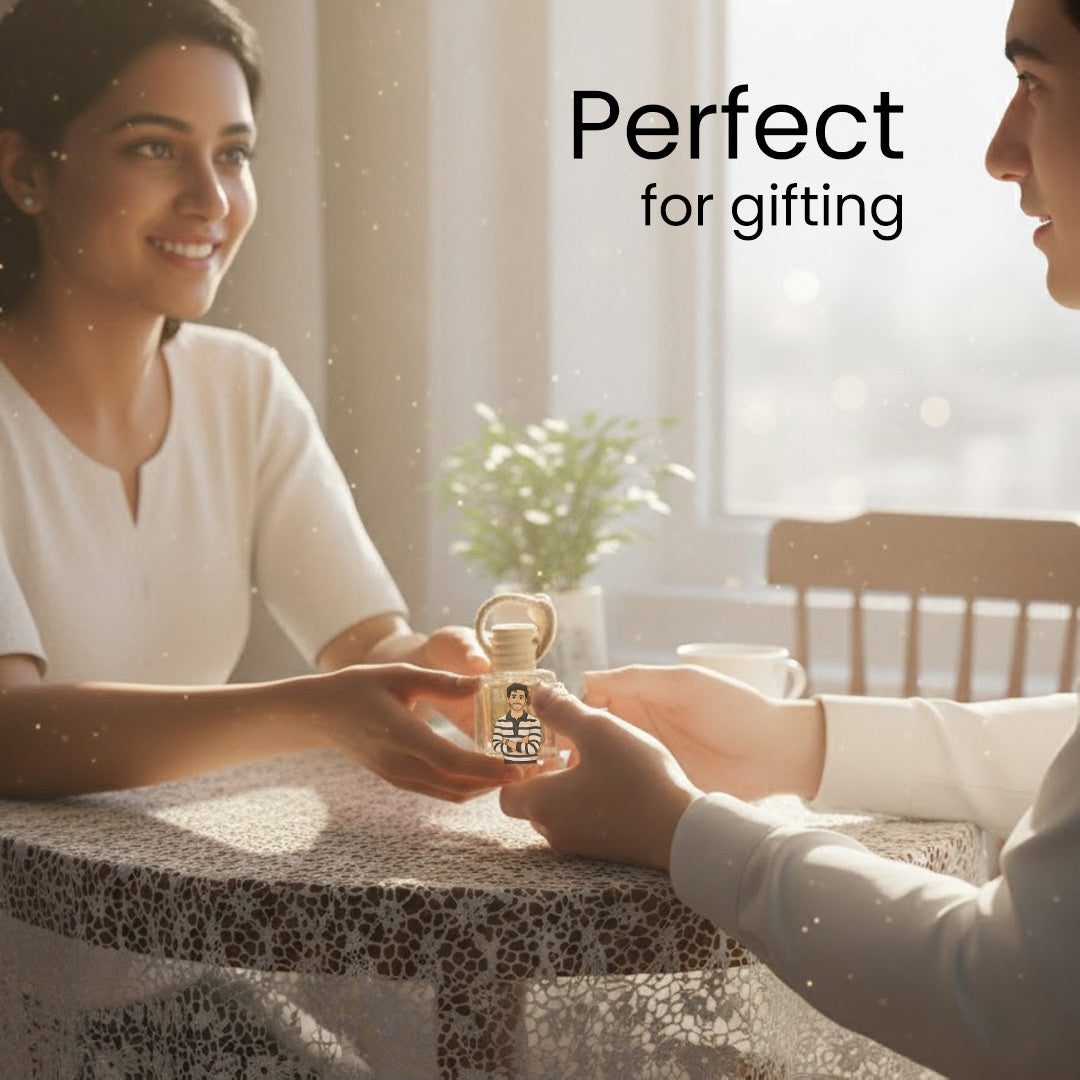 A thoughtful car accessory with custom cartoon portrait and fresh scent – perfect gift for your loved ones.