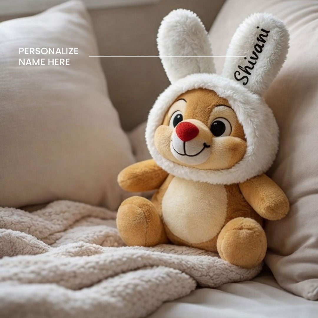 The Bunny Love Buddy is a super-soft personalized bunny teddy designed to make Valentine’s Day extra special. With an adorable bunny cap and your loved one’s name printed on the ear, this plush becomes more than a toy—it becomes an emotional keepsake filled with warmth, comfort, and love.