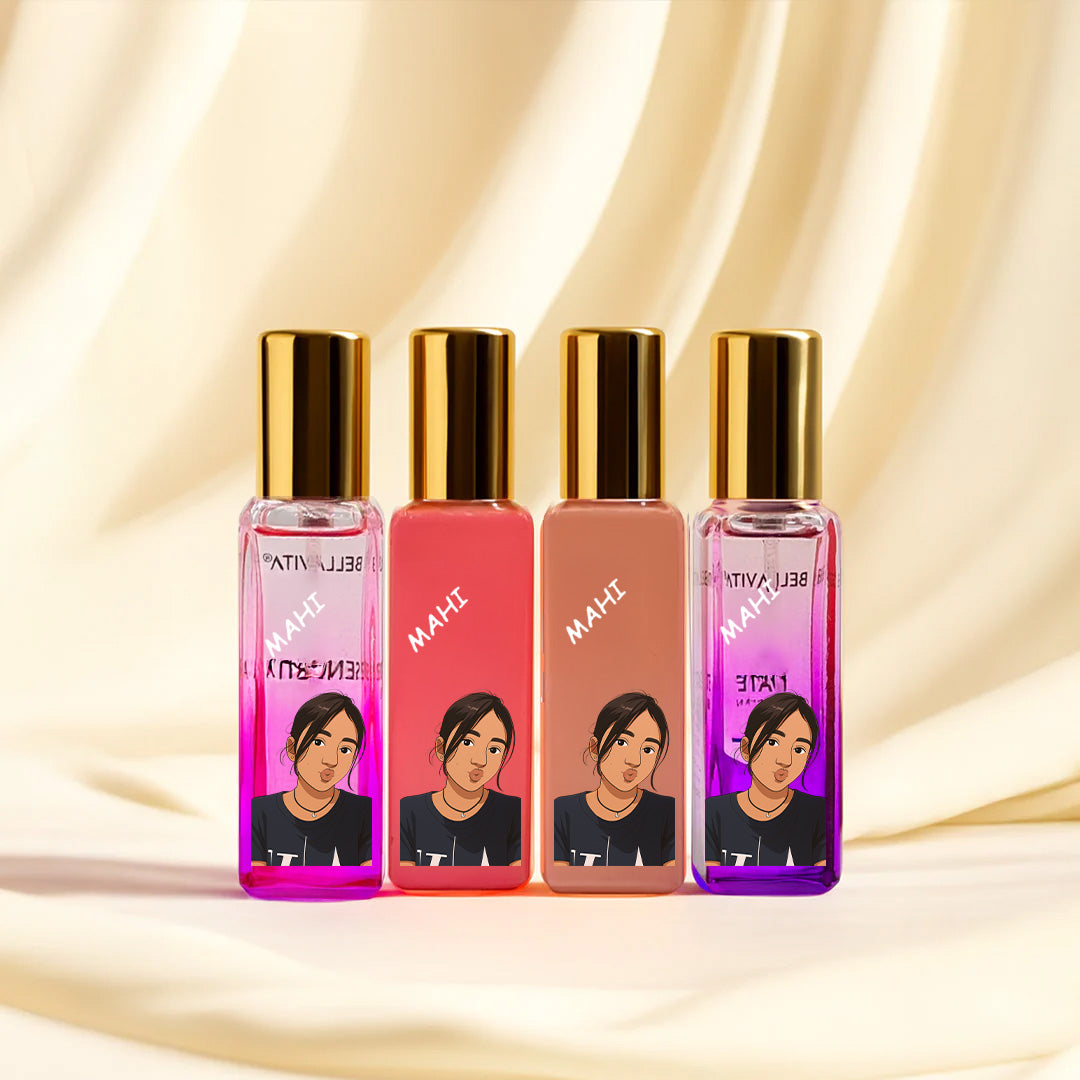 Gift a scent that speaks your name! This Customized Bella Vita Perfume Gift Set for Women includes four 20ml fragrances, each adorned with your personalized name and a fun cartoon avatar. Whether it’s for your daily vibe or special moments, this premium set is designed to match every mood and occasion.