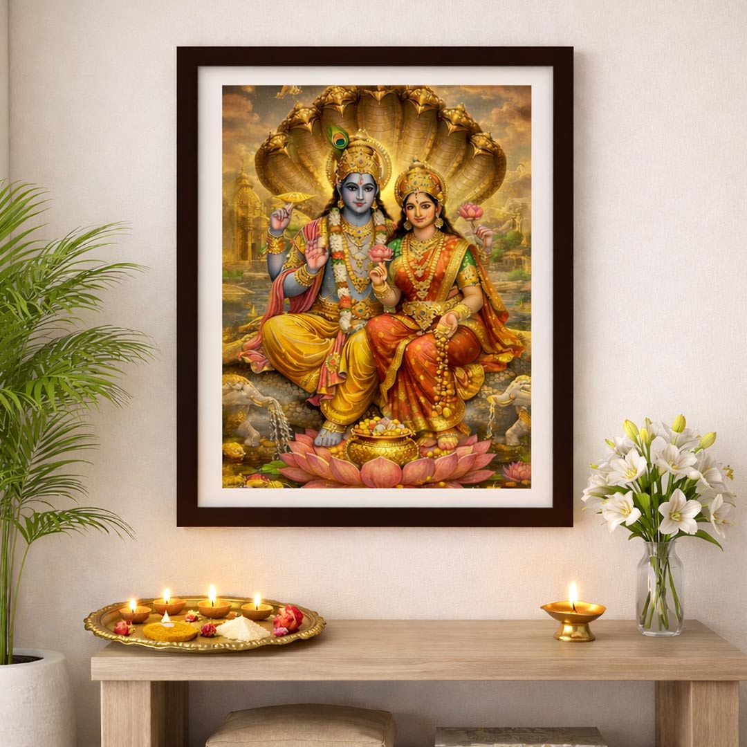 Lakshmi Narayan Wall Frame – Lord Vishnu and Goddess Lakshmi Spiritual Wall Art (Multiple Sizes) | Love Craft Gifts