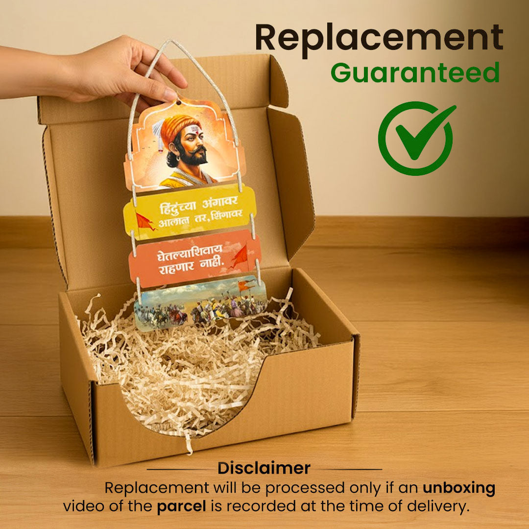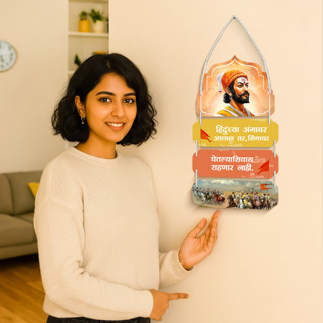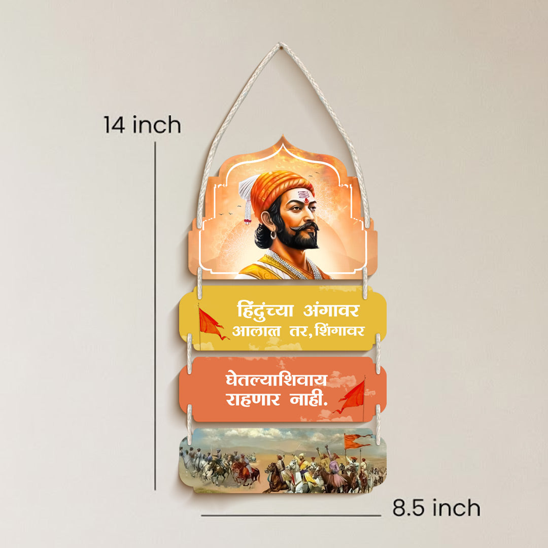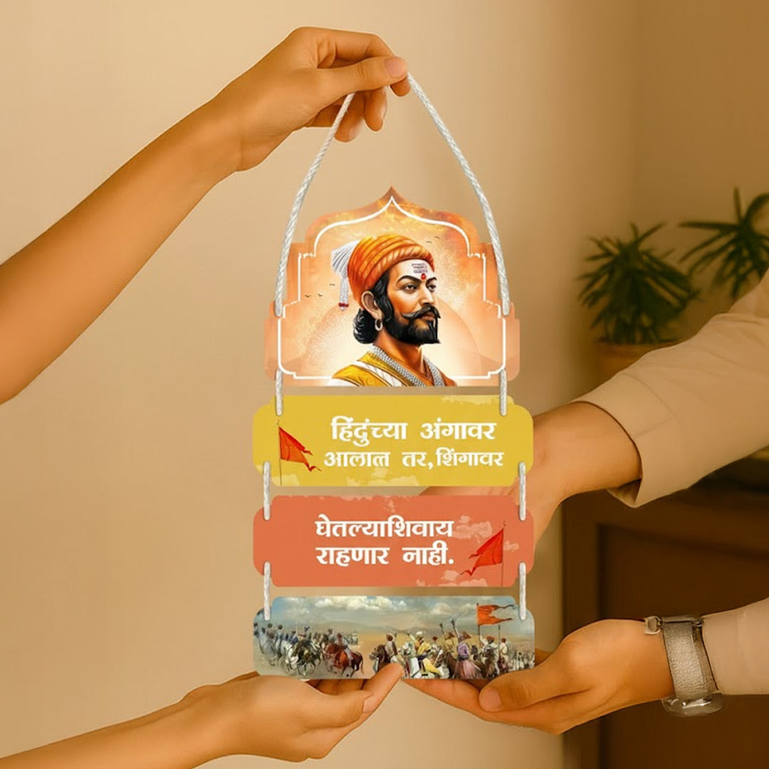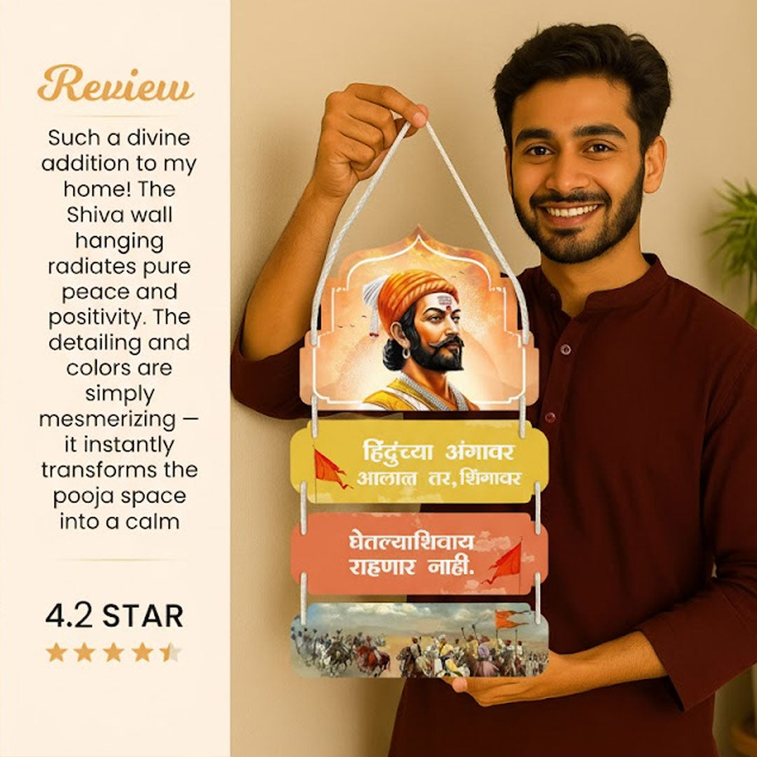 - Premium MDF Wooden Hanging – Multi-layer artwork with powerful Shivaji Maharaj portrait.
