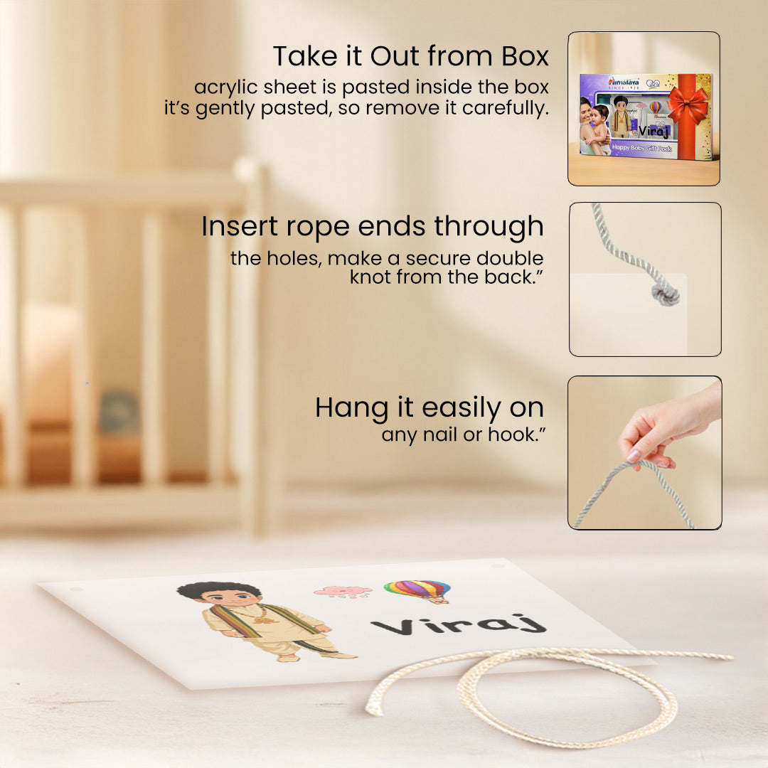 - 1 × Personalized Acrylic Name Tag (customized with baby’s name & cartoon art)