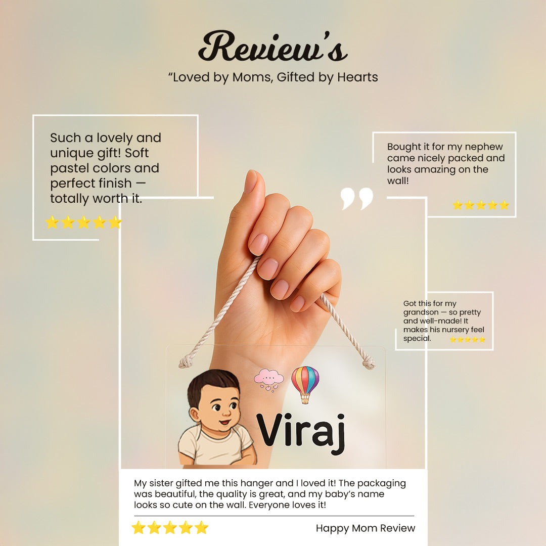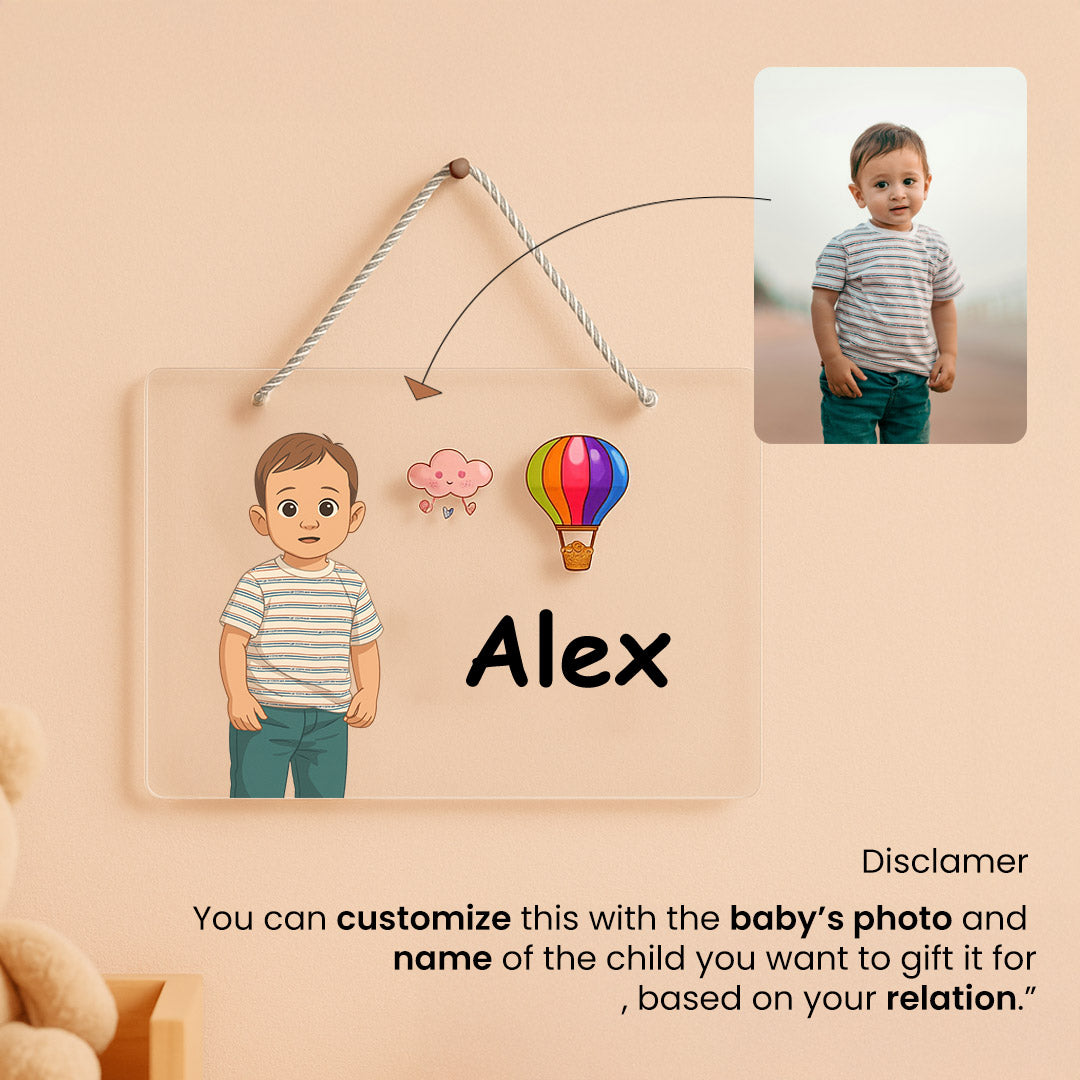 - Personalized Name Tag – Add your baby’s name to a cute acrylic tag featuring an adorable cartoon illustration for a personal touch.