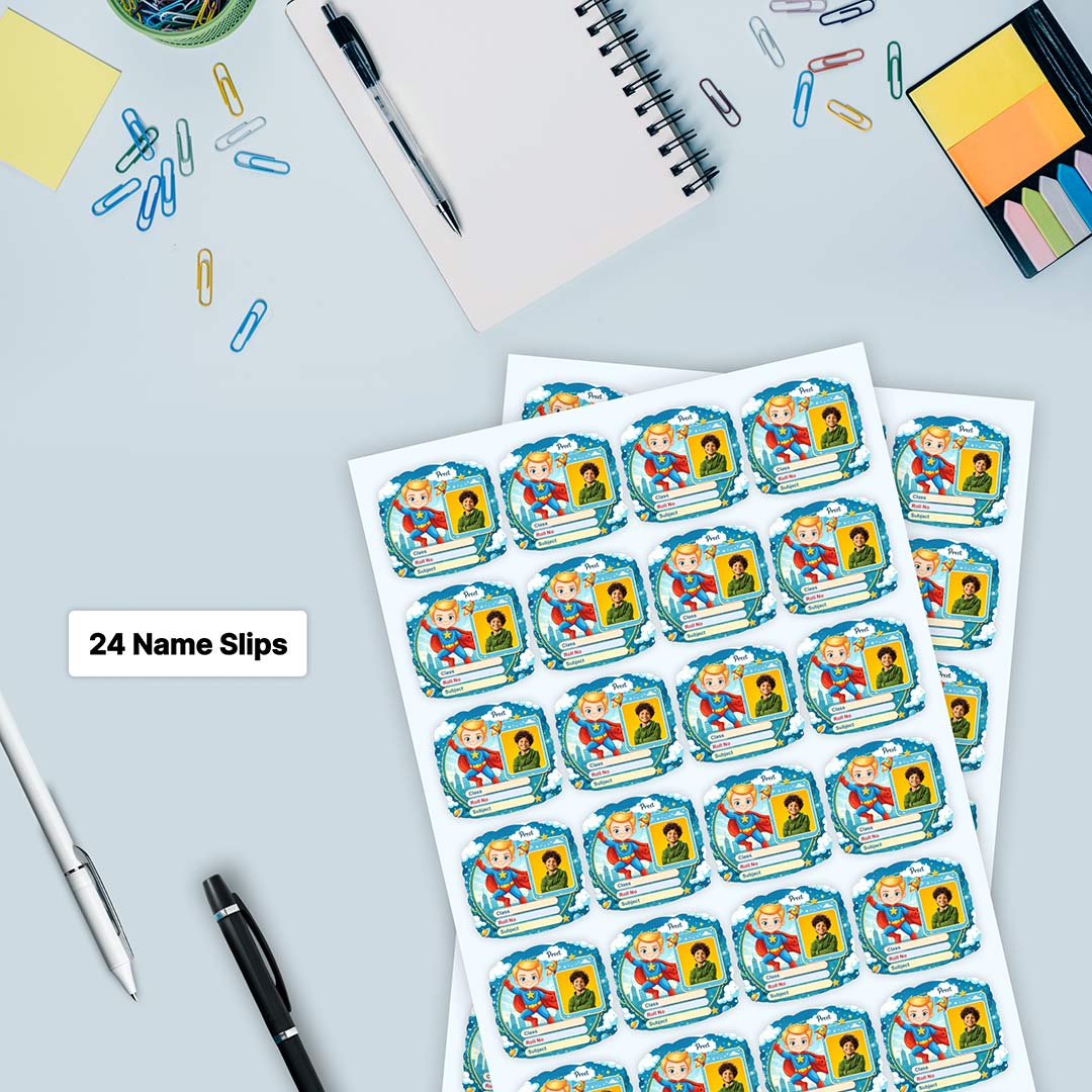 Printed on premium self-adhesive sticker paper with high-definition vibrant printing, these labels stick neatly on notebooks, textbooks, diaries, stationery boxes, water bottles, and more. They help prevent mix-ups while giving your child a confidence boost every time they see their own customized sticker.