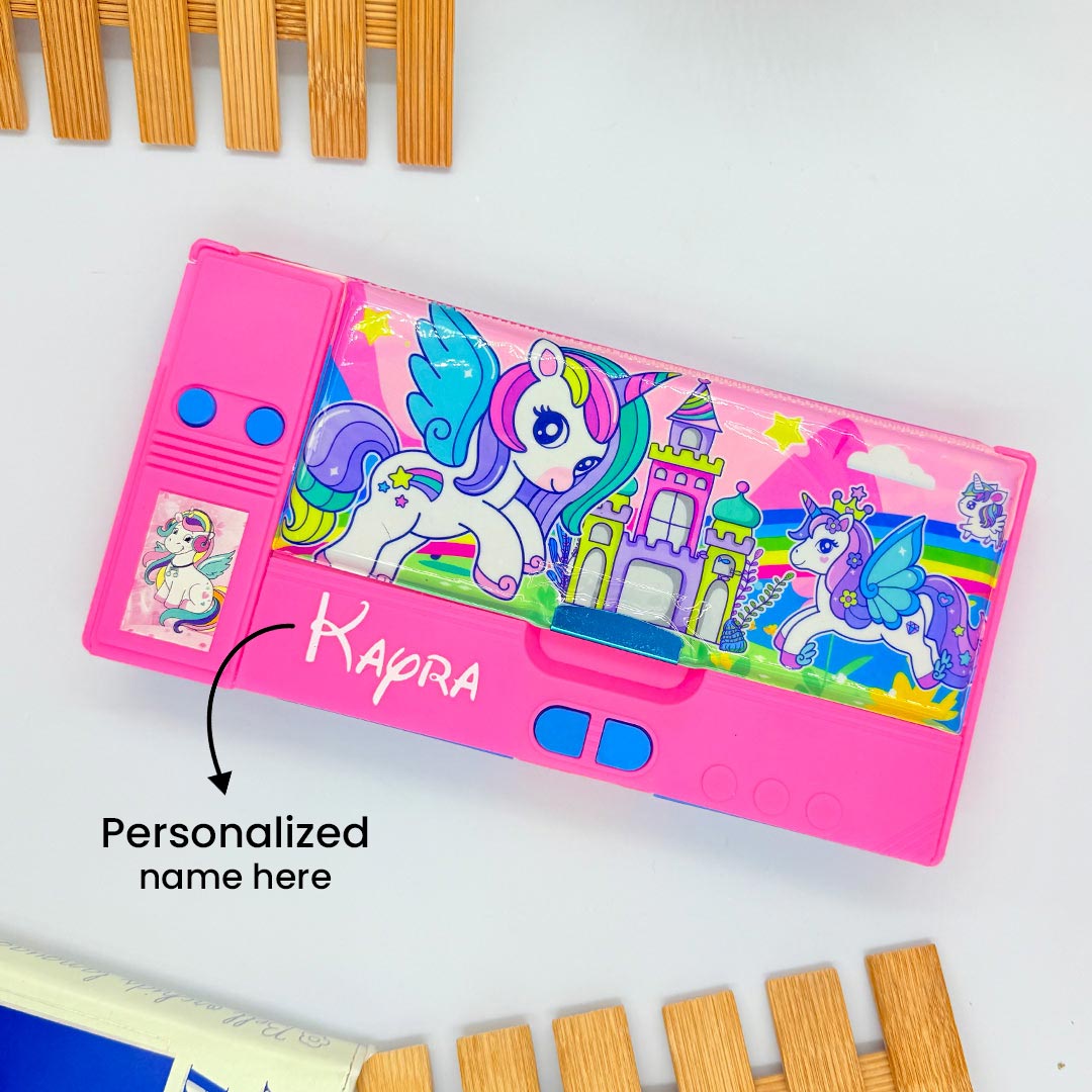Make school fun and exciting with our Unicorn-Themed School Combo, specially designed for kids who love all things magical! All product are name customization. This pink-colored set includes:
