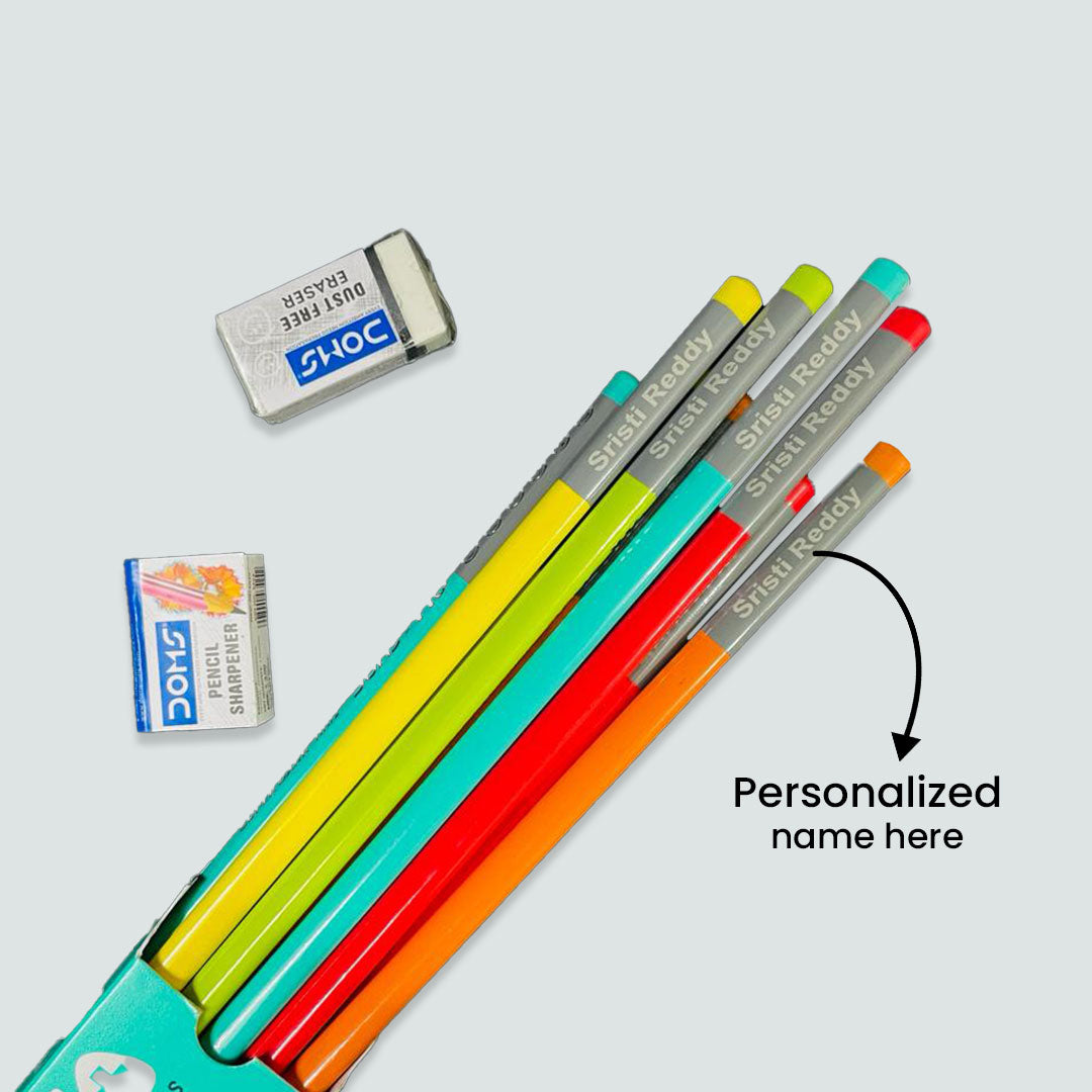 Kids Stationery Kit -10 Pencils(1 Box) , 1 Eraser, 1 Sharpener & Sticky Notes