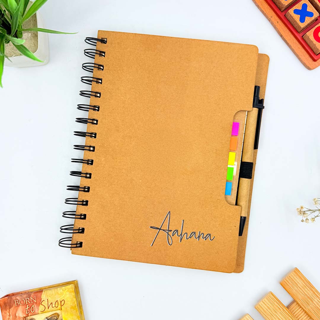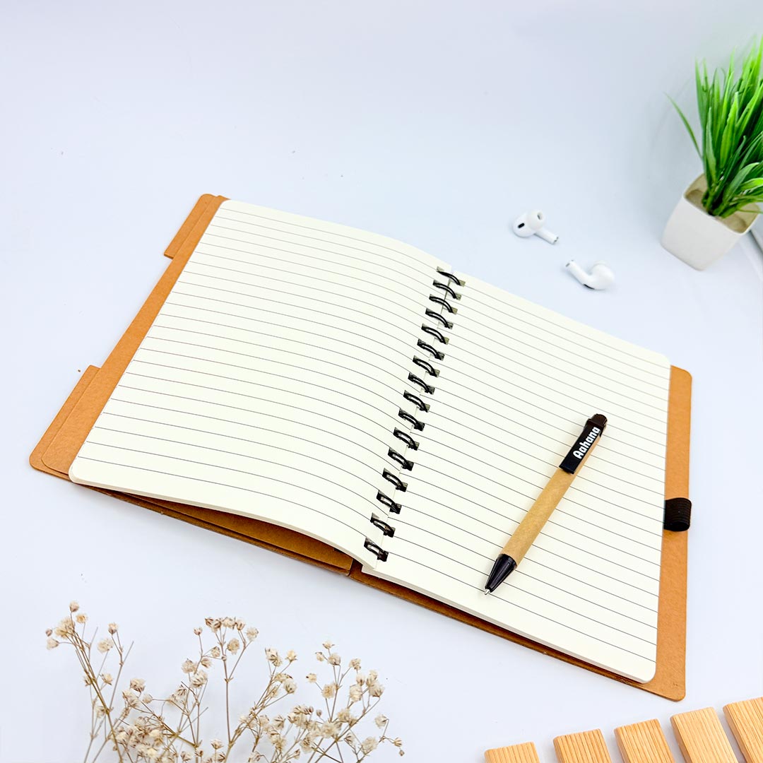 Personalized Spiral Notebook & Pen Set – 7 x 5 inches – Beige