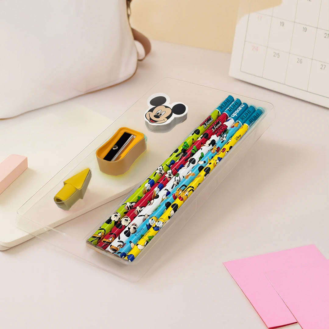 - 10 Pencil Pack + Accessories – Includes fun-shaped erasers and sharpener with Disney characters