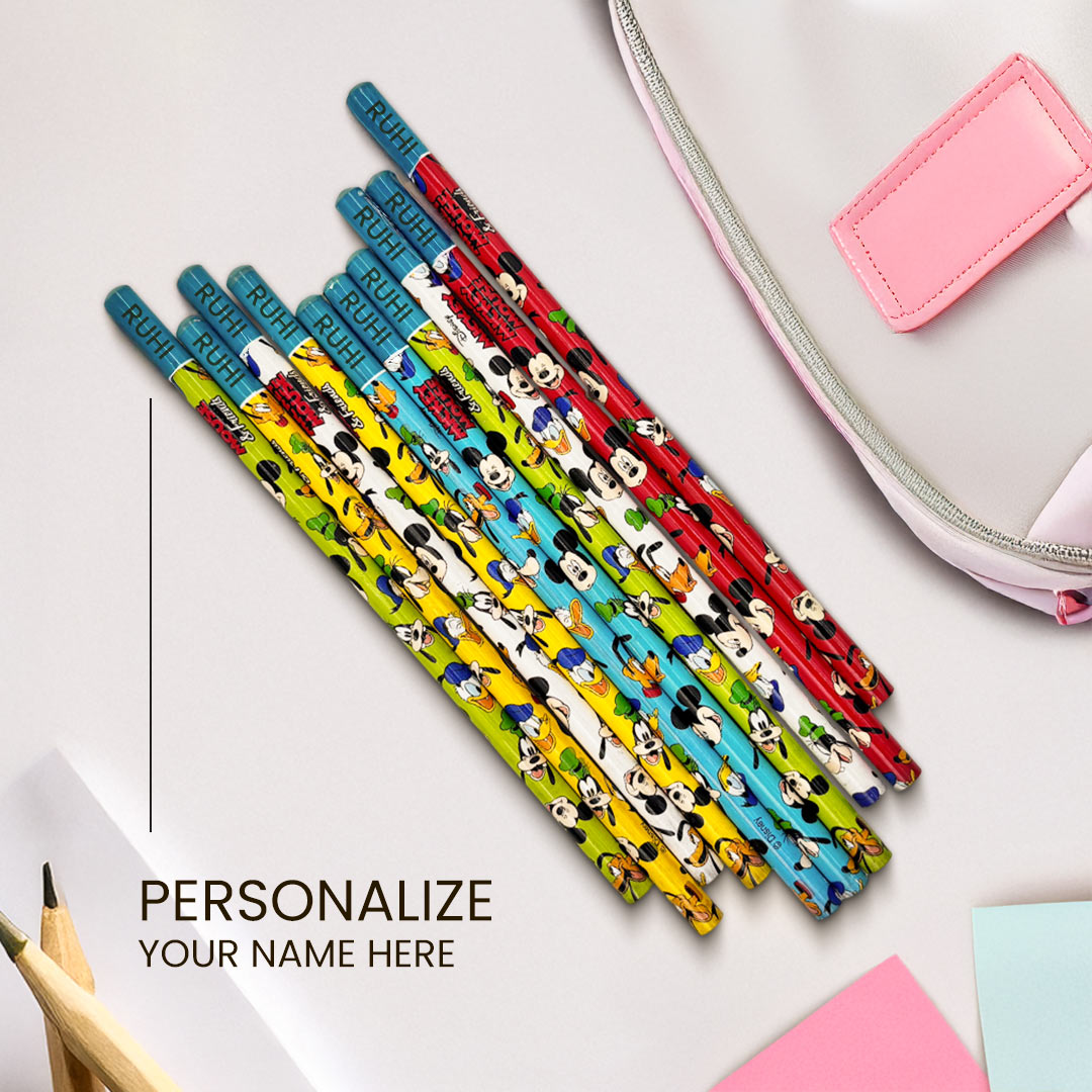 Add fun to writing with Mickey, Donald, Goofy & friends — and your child’s name on every pencil!