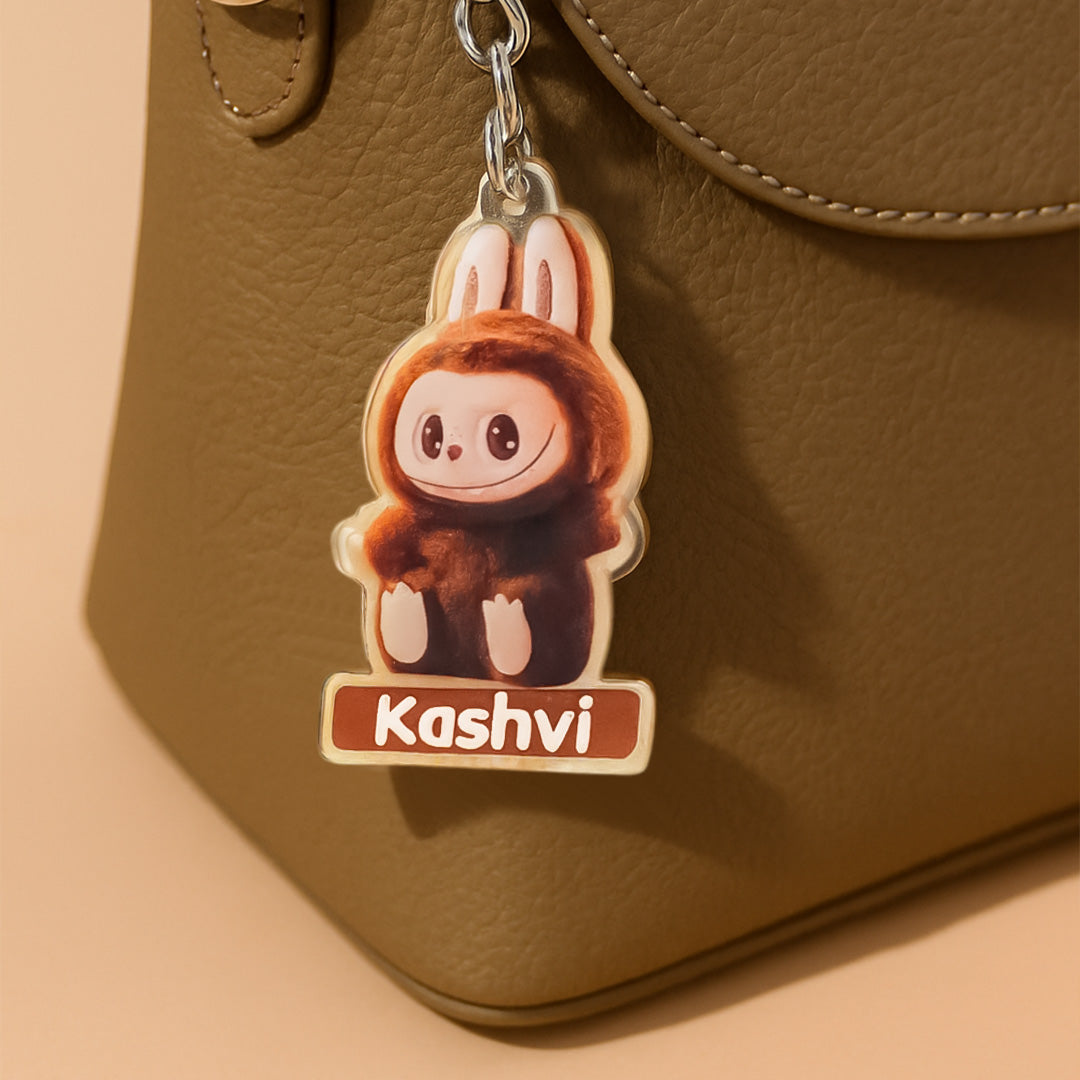 A cozy bunny-eared keychain in warm brown tones — with your name printed on it for a personal touch.