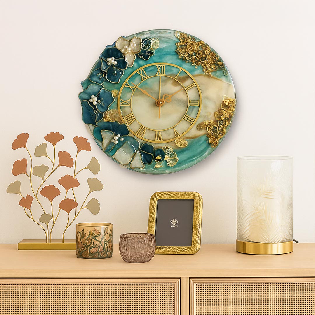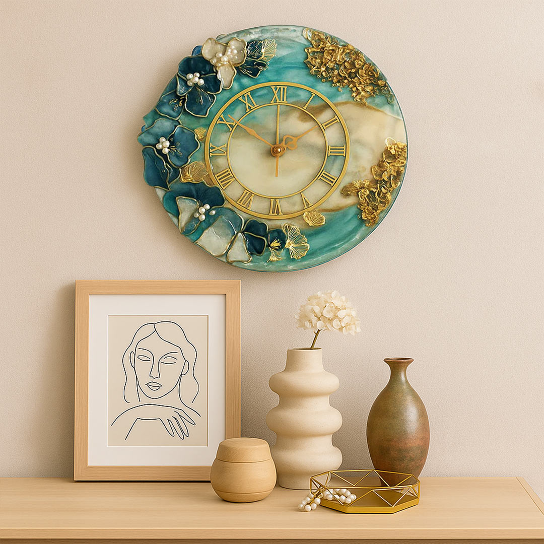 - Unique Artistic Resin Clock – Round wall clock handcrafted with premium resin and elegant floral textures