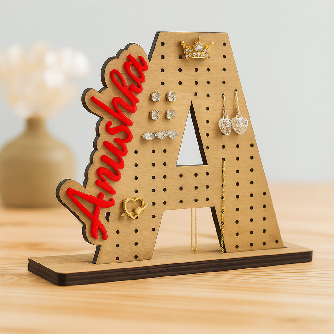 Chic & functional wooden jewellery organizer with your name — perfect for storing earrings, studs & gifting.