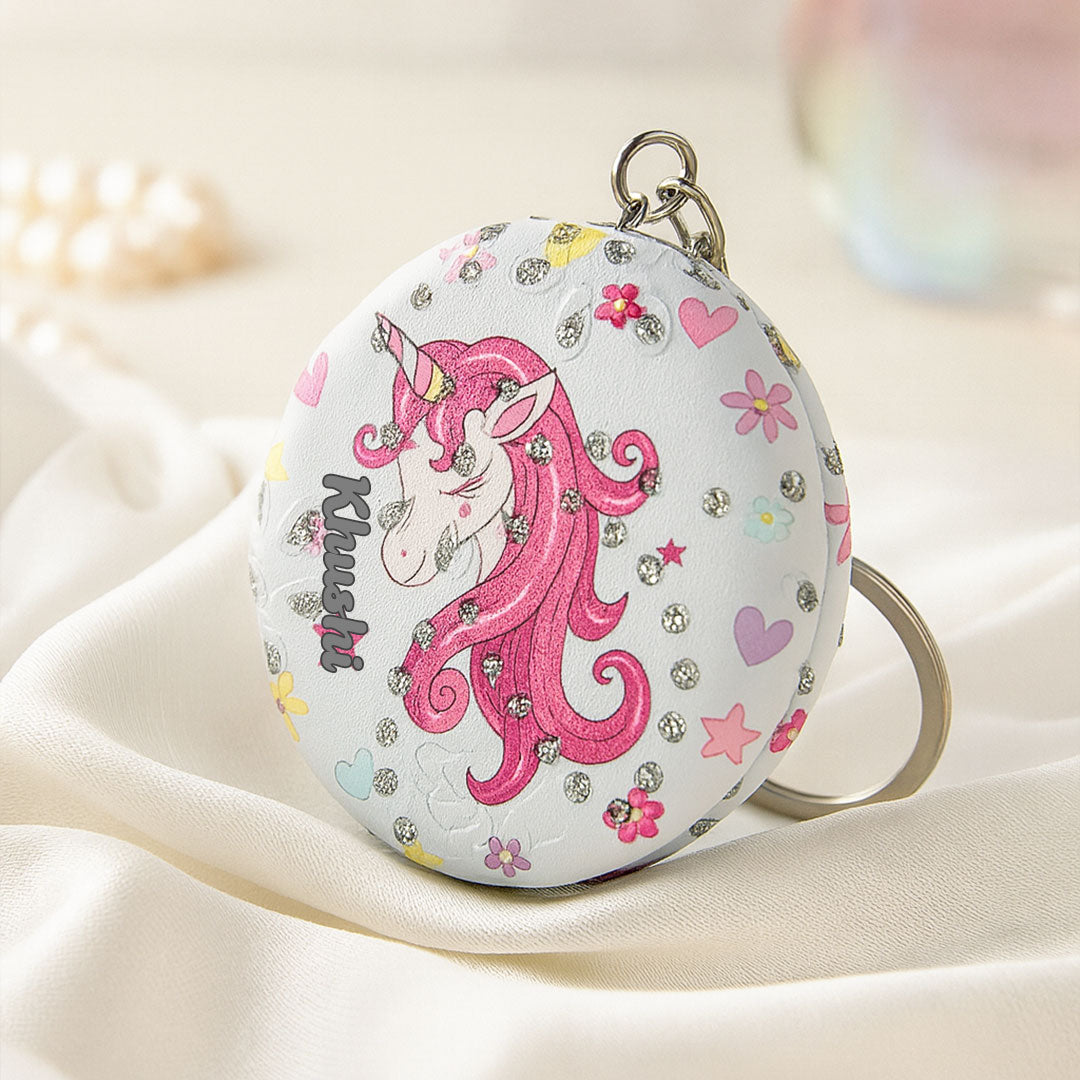 | Design | Unicorn with rhinestones, hearts, and floral art |