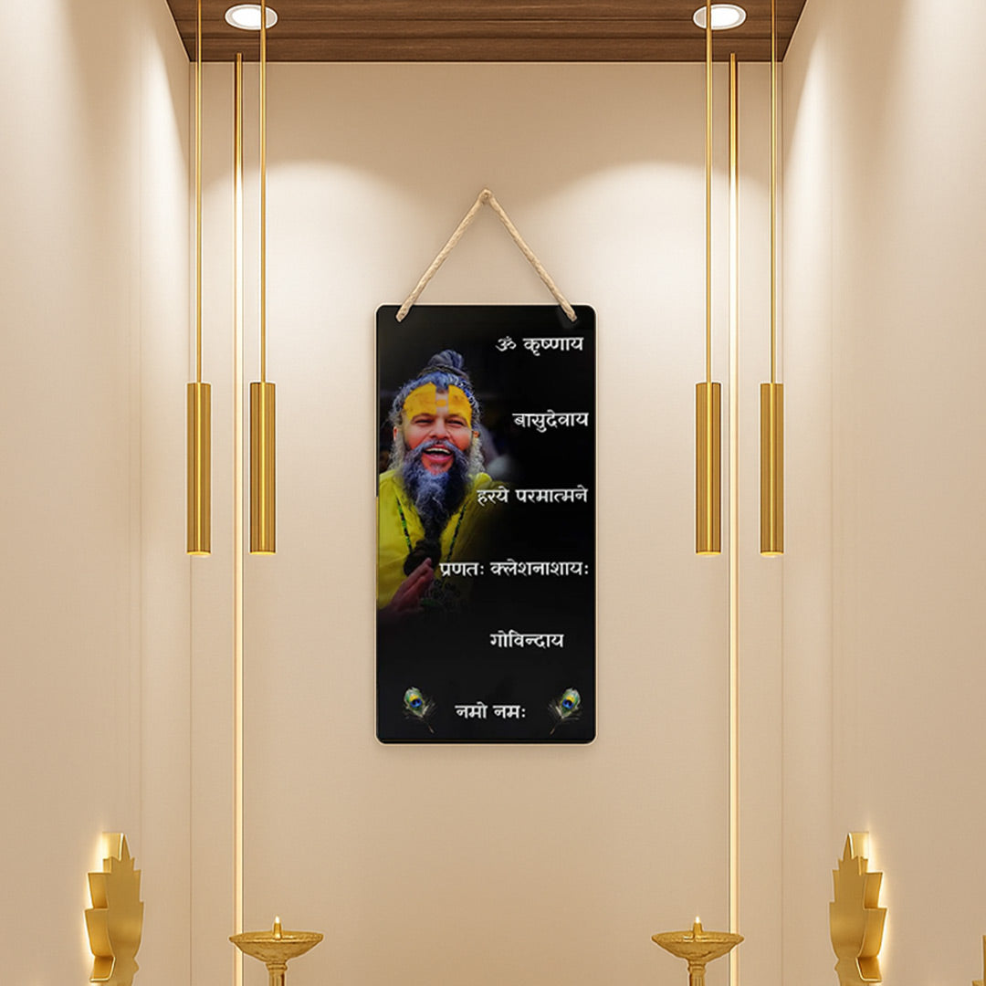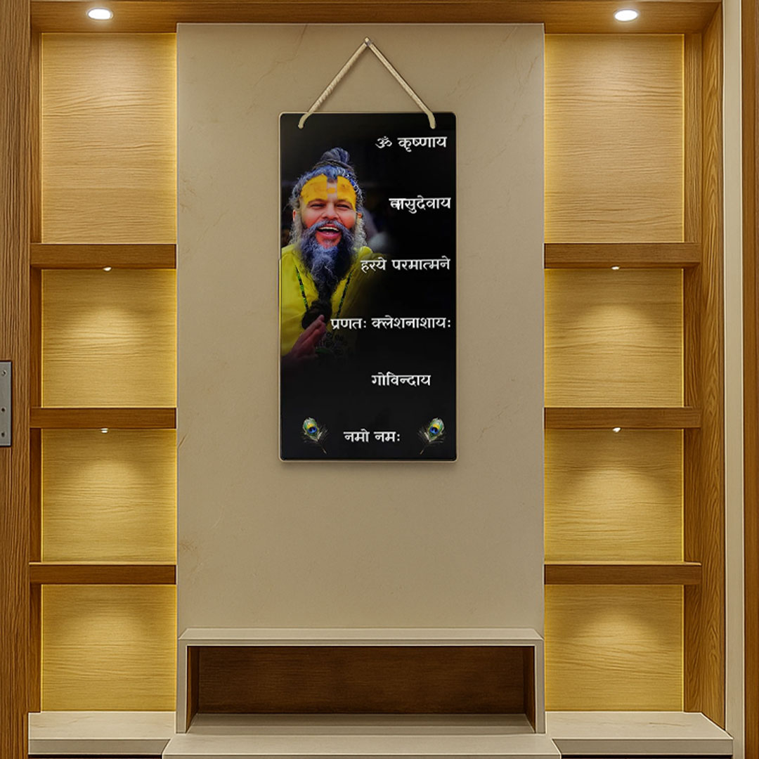 - Divine Wall Décor: Features a spiritual photo of Premanand Ji Maharaj along with a sacred Sanskrit mantra.