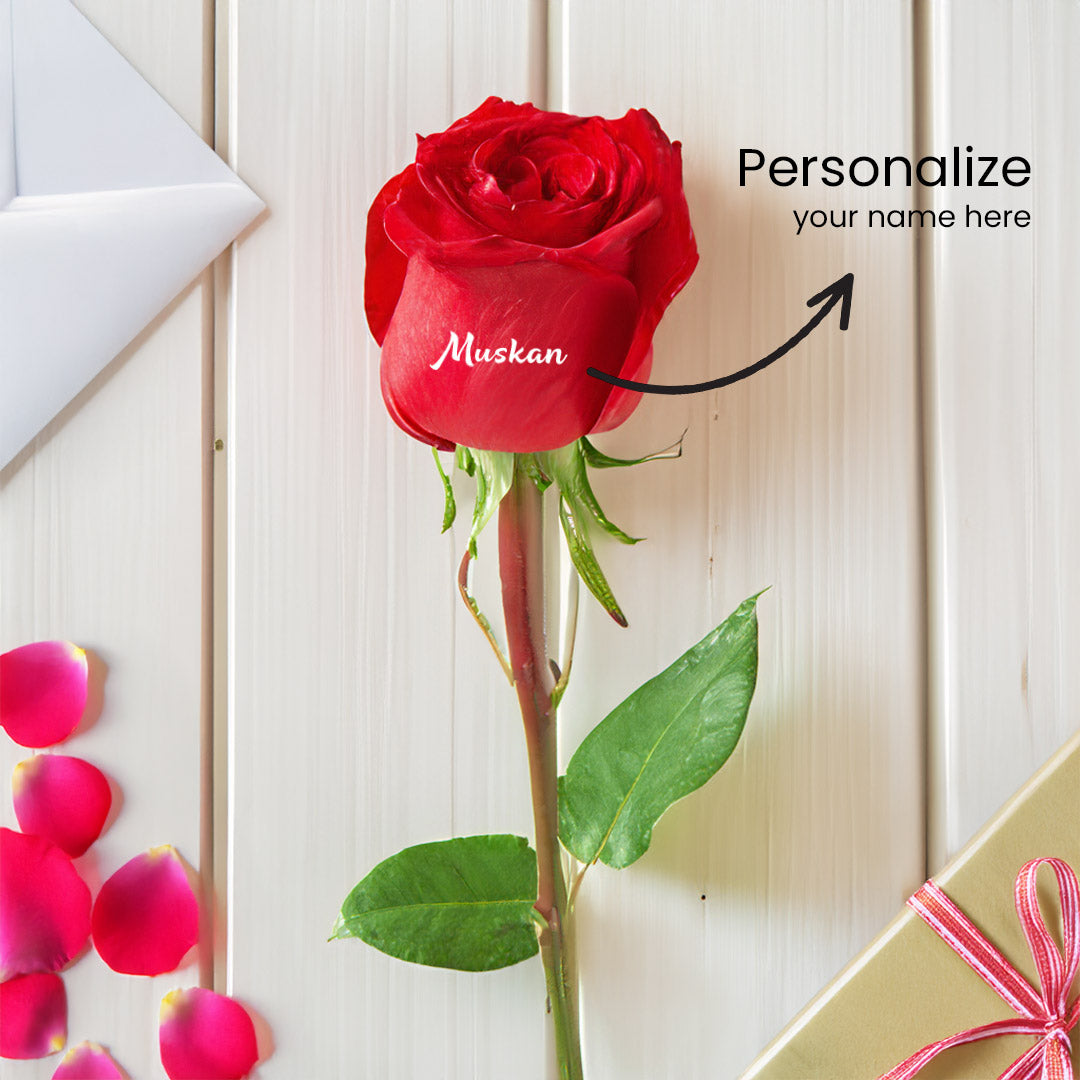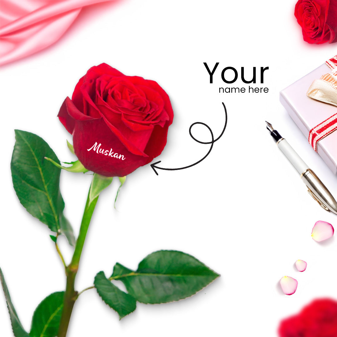 Personalized Real Red Rose with Custom Name – Elegant & Everlasting Gift