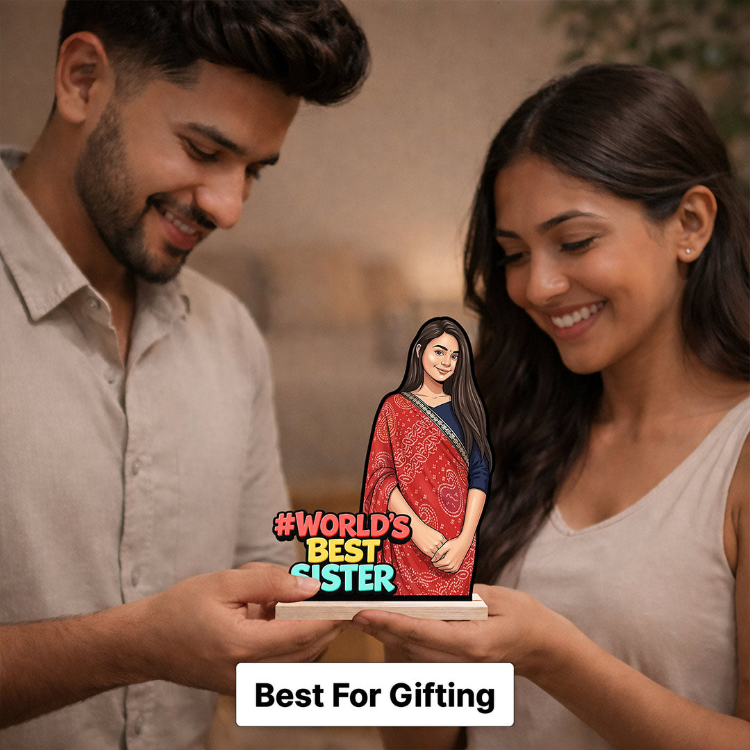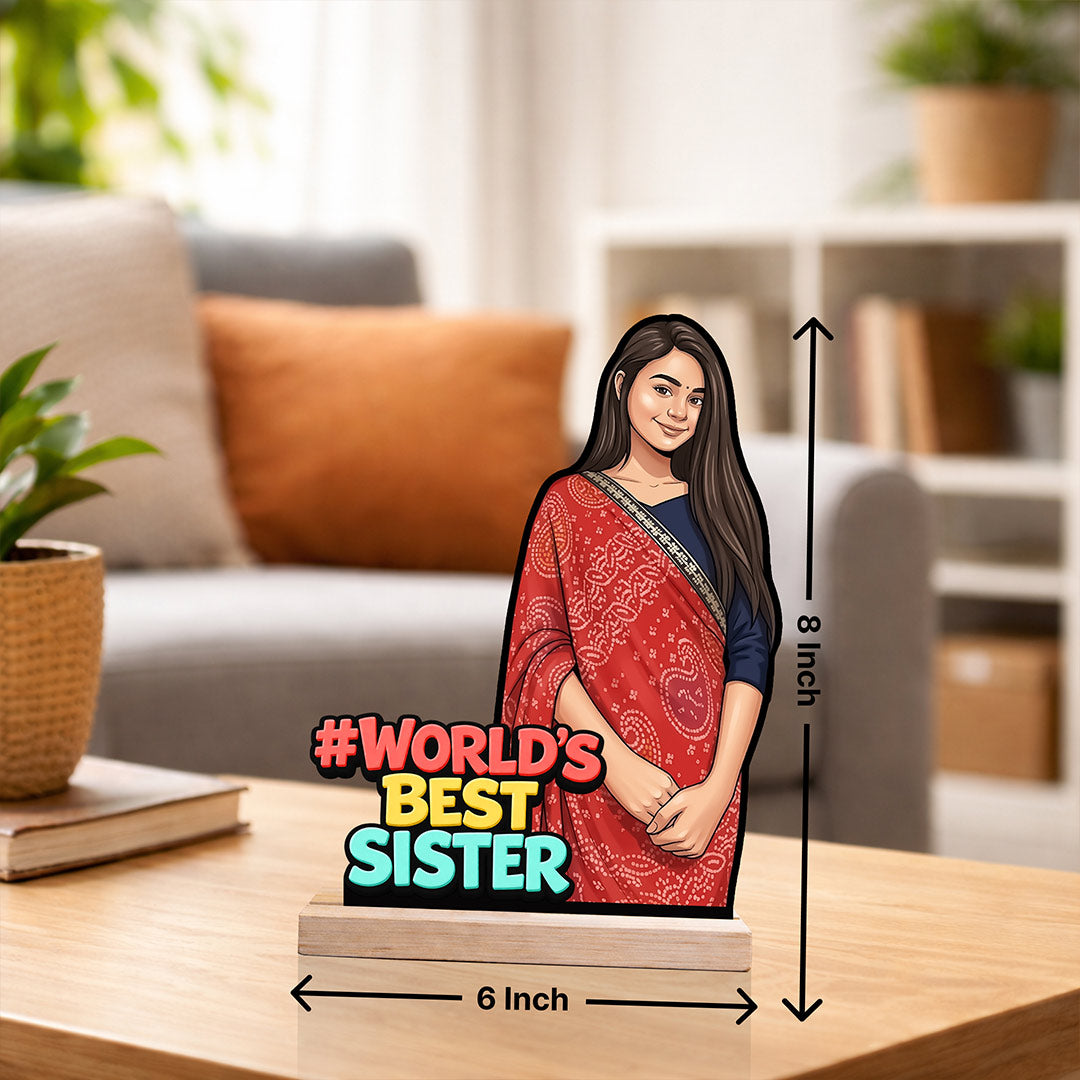 Make your sister feel truly special with this personalized “World’s Best Sister” wooden cartoon cutout stand. Designed with a vibrant and expressive cartoon illustration, this piece transforms your photo into a fun and heart-touching keepsake.
