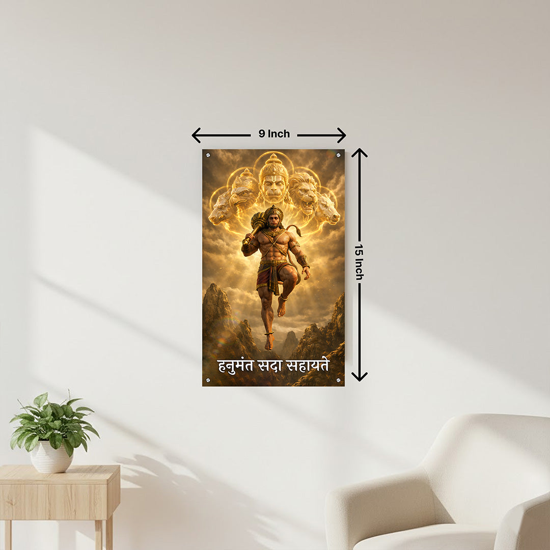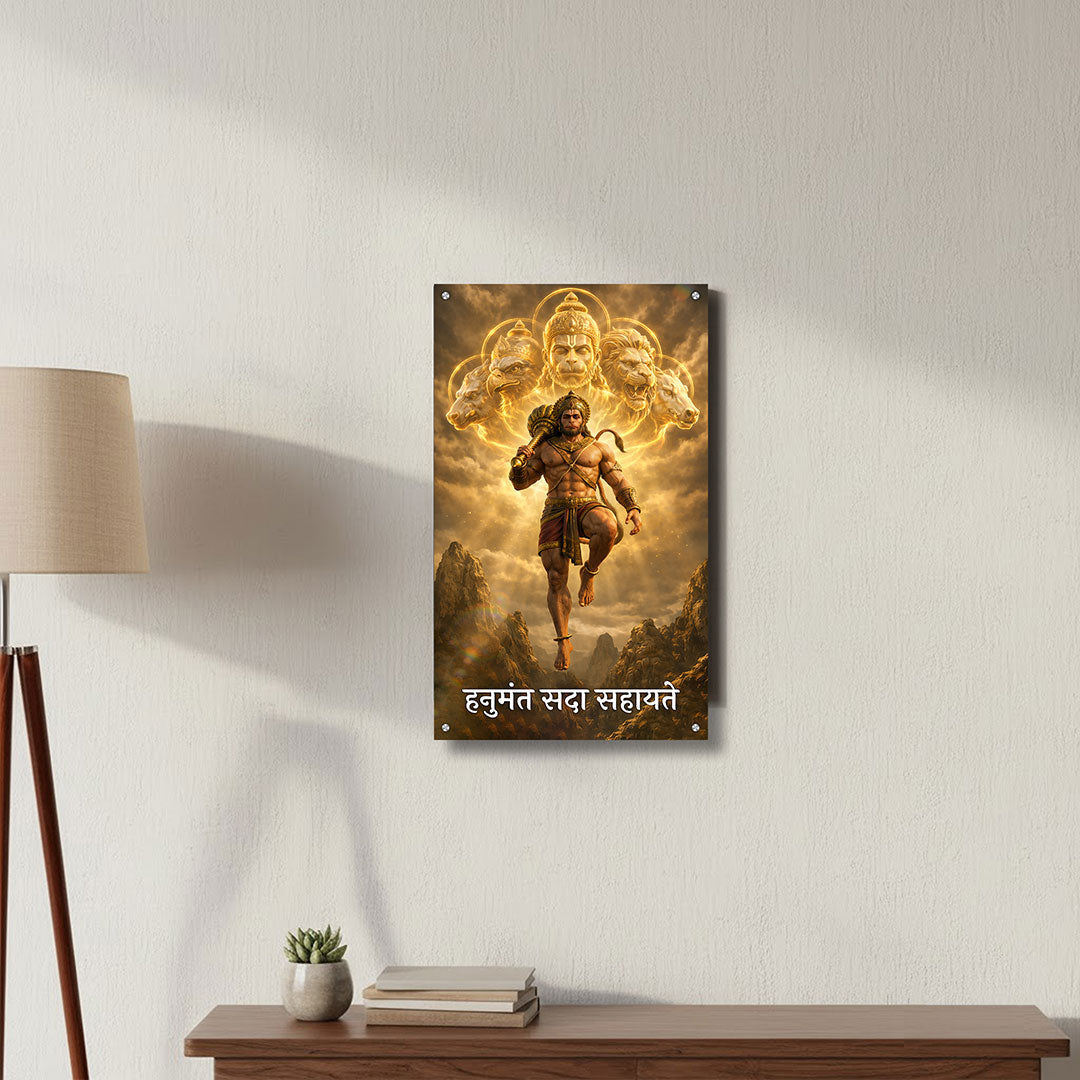 Crafted on high-quality acrylic material, this powerful artwork of Veer Hanuman Ji with the sacred mantra “हनुमंत सदा सहायते” adds spiritual depth and modern elegance to your walls.