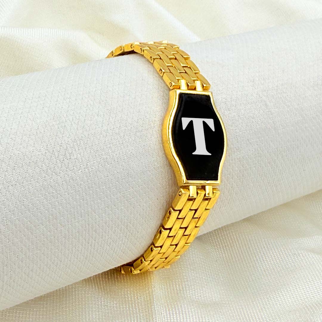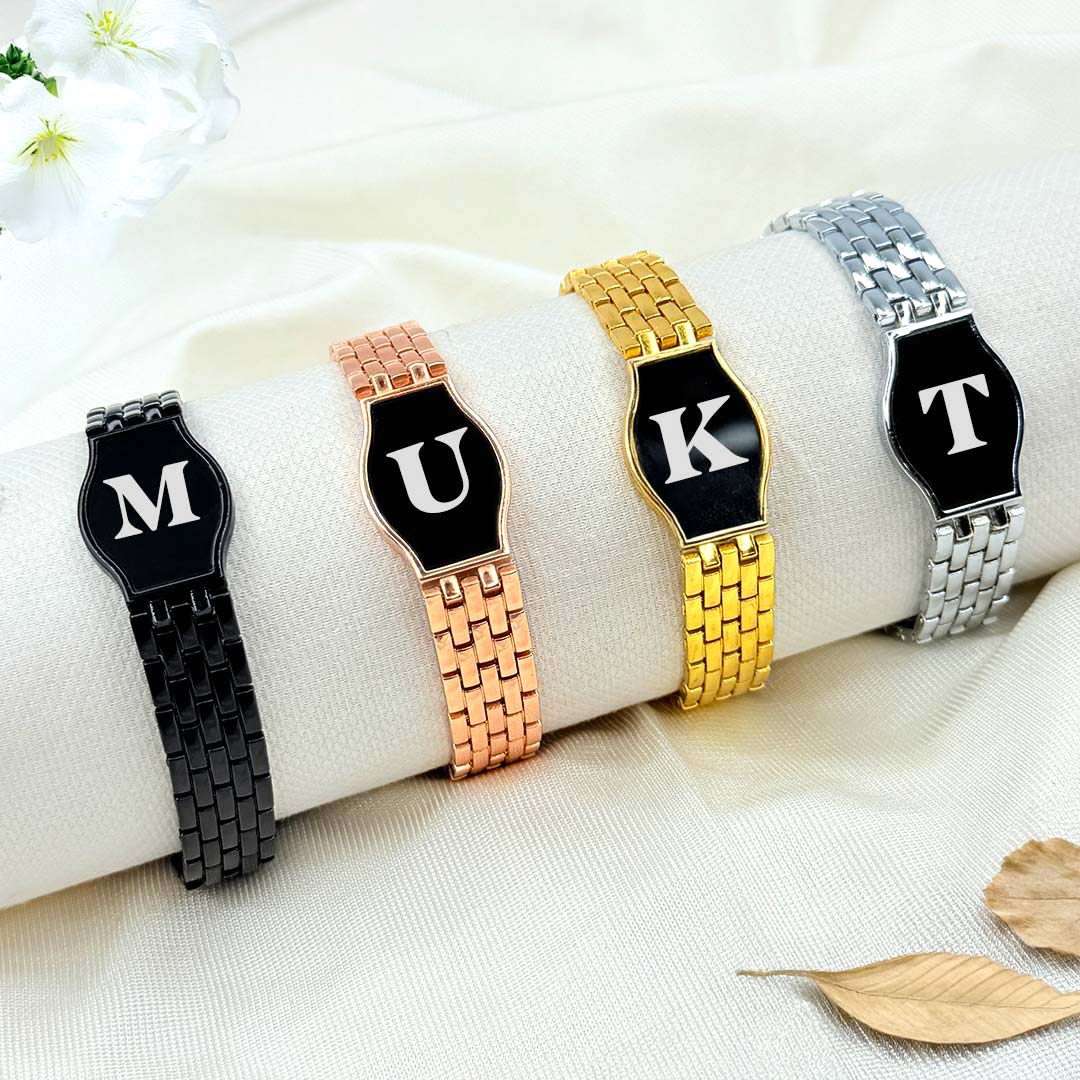 Custom Initial Metal Strap Bracelet – Stylish & Elegant