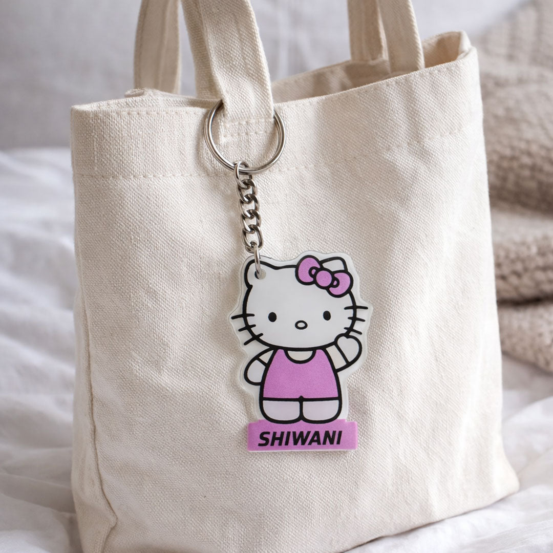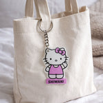 Add a touch of cuteness to your keys, bags, or gifts with this Personalized Cartoon Acrylic Name Keychain inspired by the adorable Hello Kitty style.