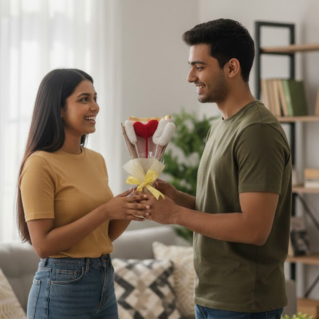 Made with soft yarn and elegant detailing, it’s ideal for gifting on romantic occasions and keeps your feelings alive forever.