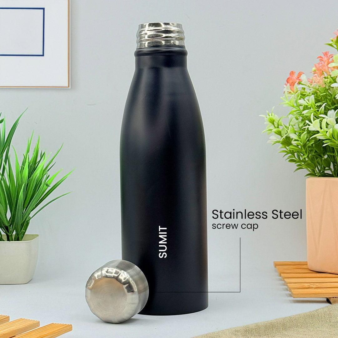 Stay hydrated in style with our 500ml Personalized Stainless Steel Bottle – a perfect blend of elegance and utility. Crafted from premium-quality stainless steel and finished in a sleek matte black look, this bottle is ideal for daily use at the office, gym, or while traveling.