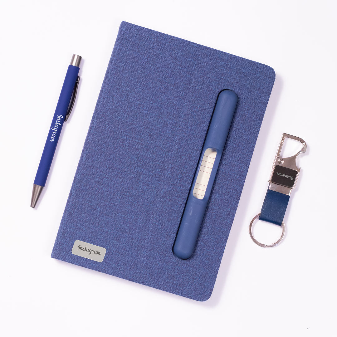 - Best Corporate Diwali Gift Combo: Includes a stylish blue diary, matching pen, and a durable keychain.