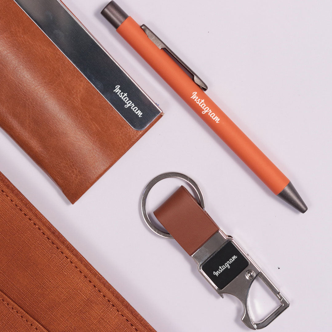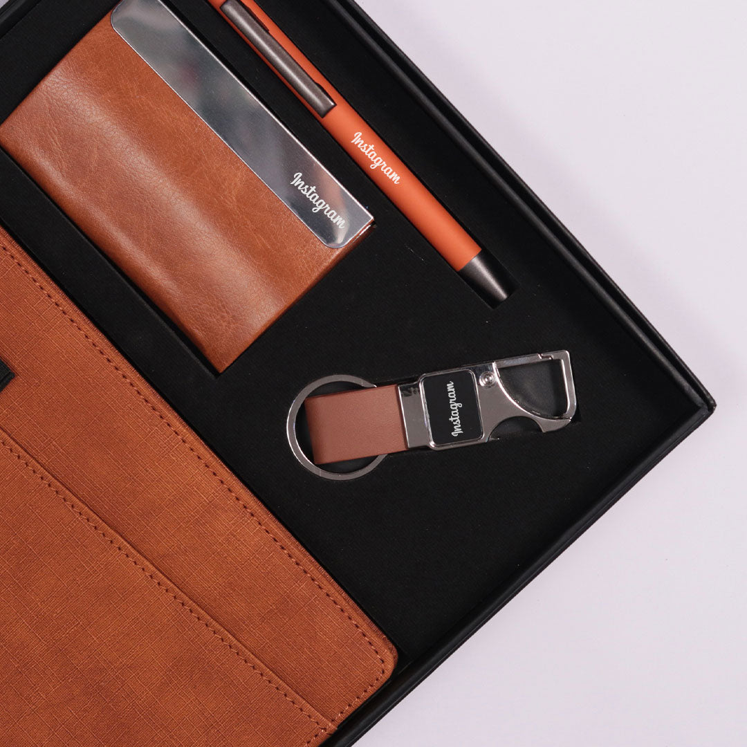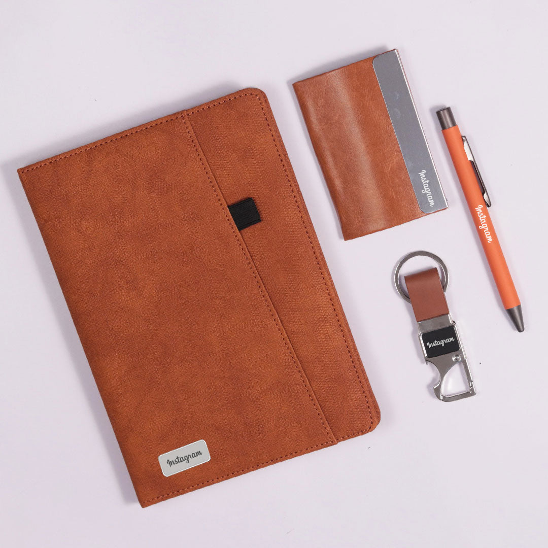 Personalized Combo Gift Set: 4-Piece Corporate Gift (Diary, Pen, Card Holder & Keychain)
