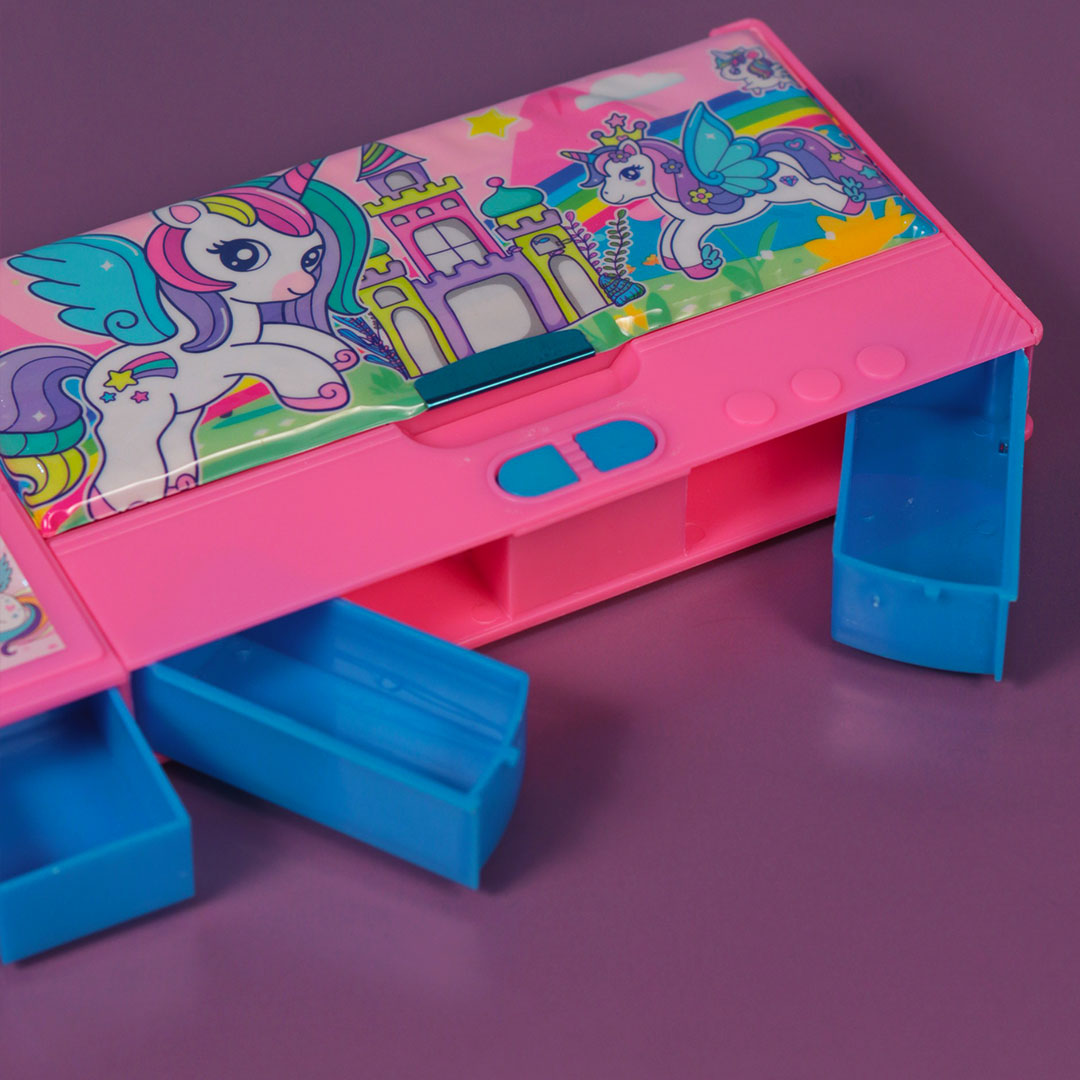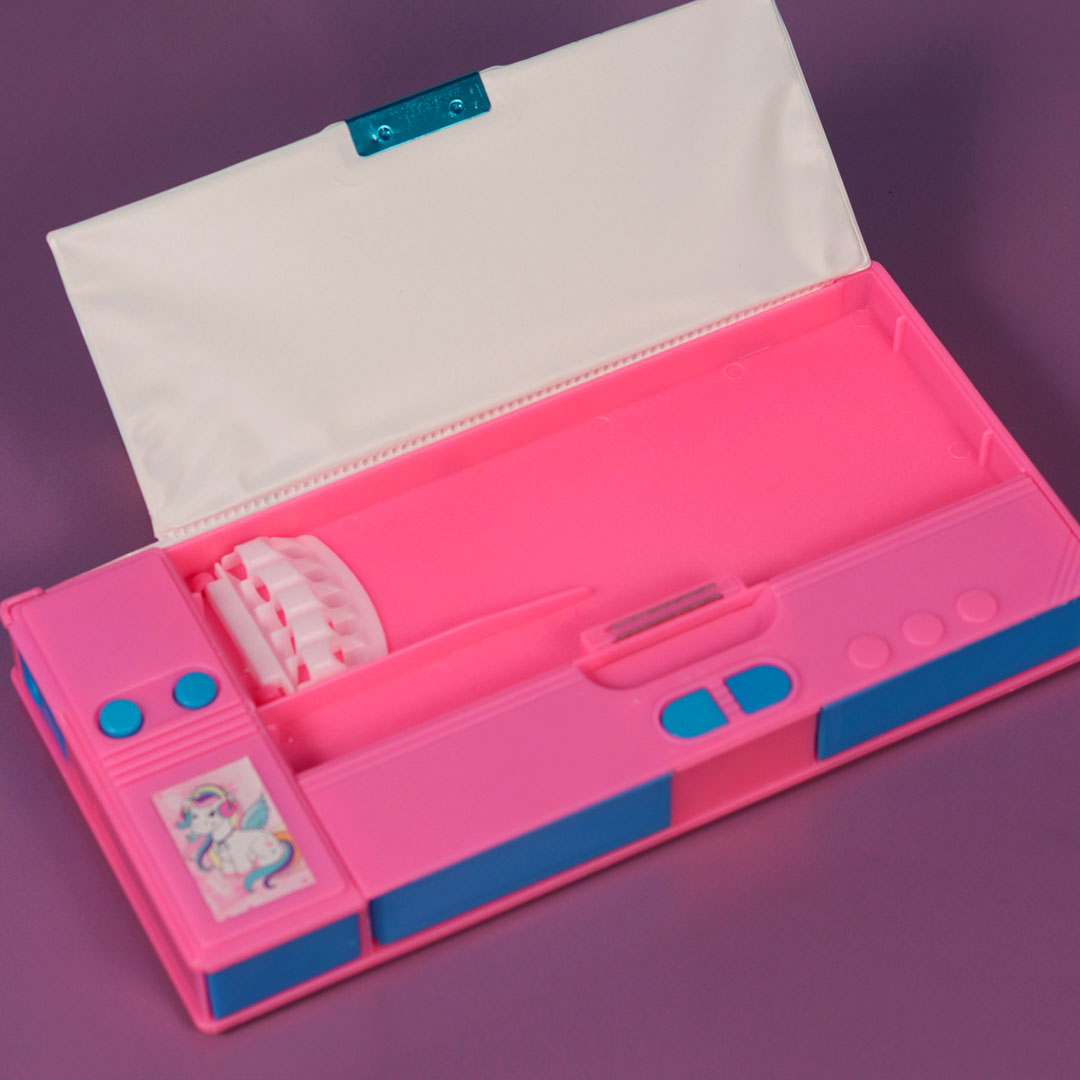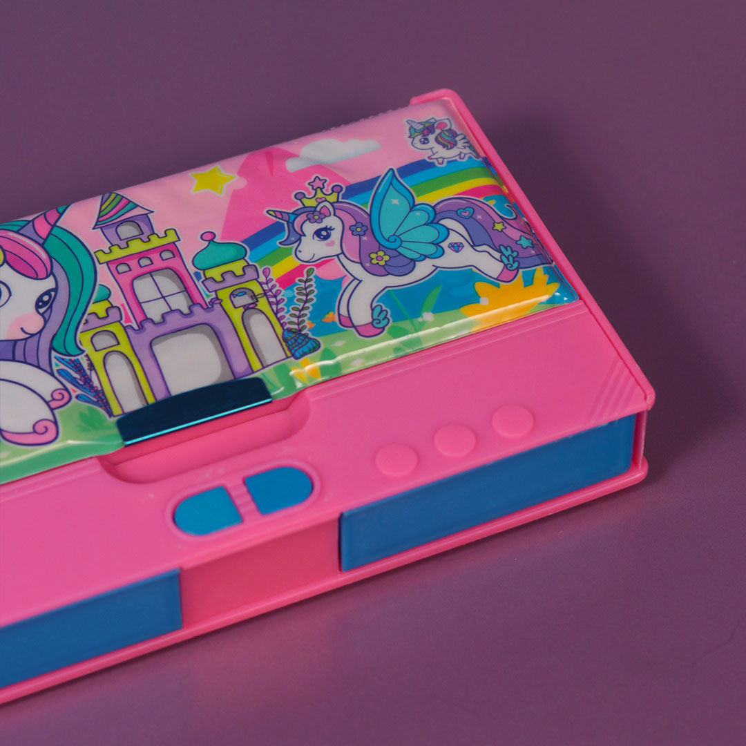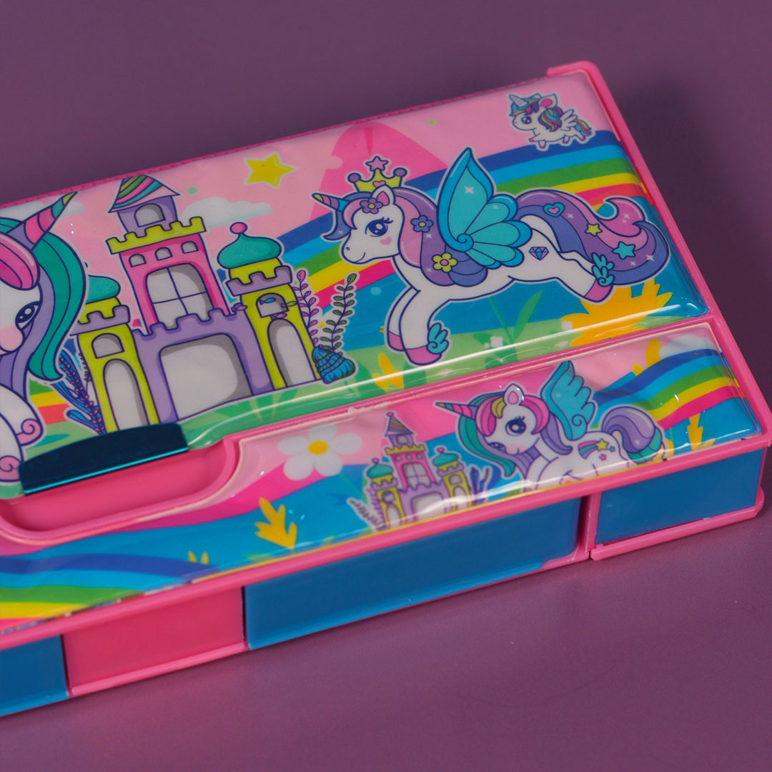 Personalized Unicorn Jumbo Pencil Box for Girls (Set of 1, Pink)