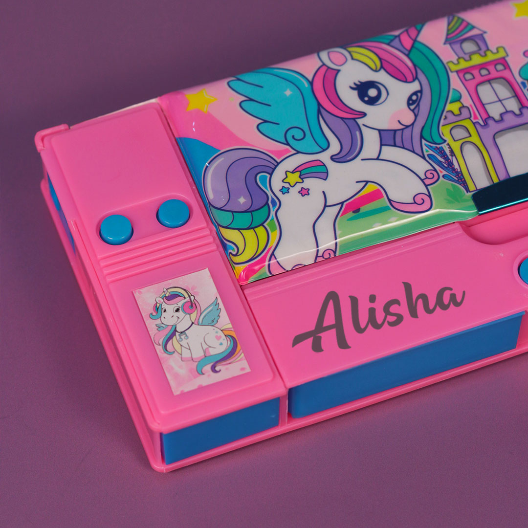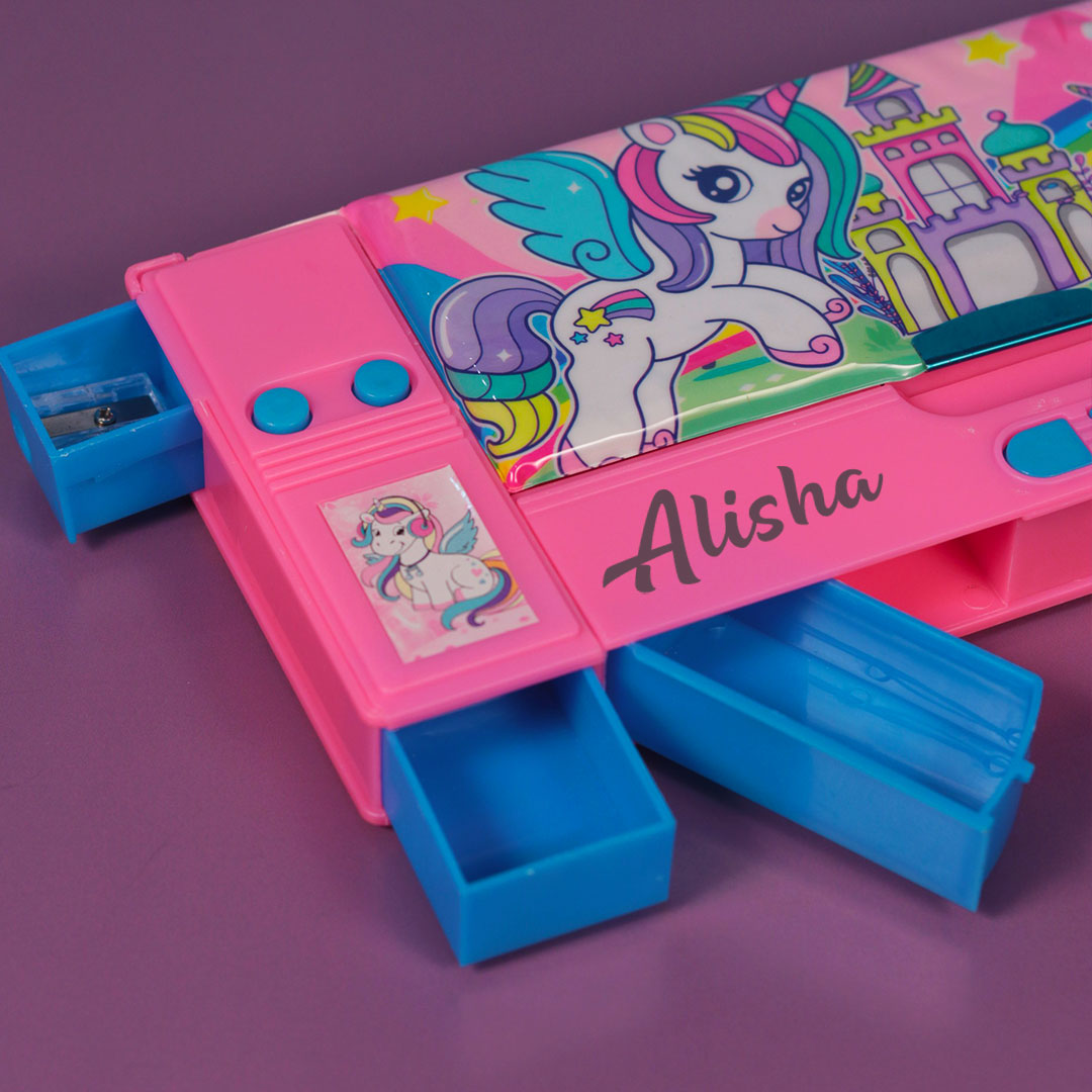 The Personalized Unicorn Pencil Box for Girls is a delightful addition to any young student's school supplies. Inspired by the beloved characters from Disney's Frozen, this pencil box combines functionality with a unique design. In fact, it is crafted to capture the magical essence of Personalized Unicorn, it offers a unique and personalized touch to school days.
