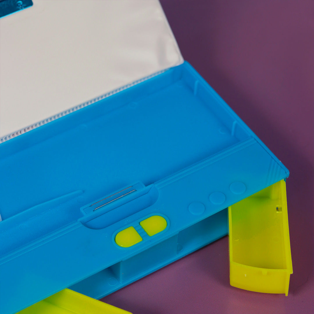 The pencil box sports a striking Blue and yellow theme, designed to appeal to young girls. The colors are vibrant yet soothing, perfect for creating a cheerful and inspiring school environment.