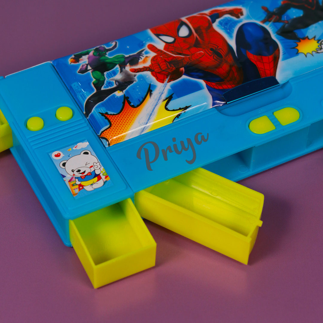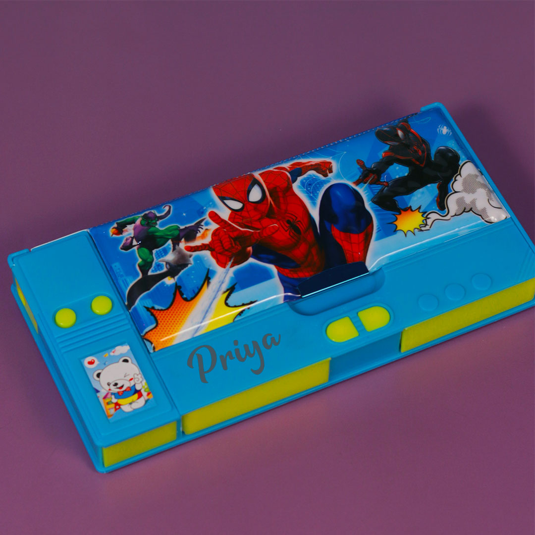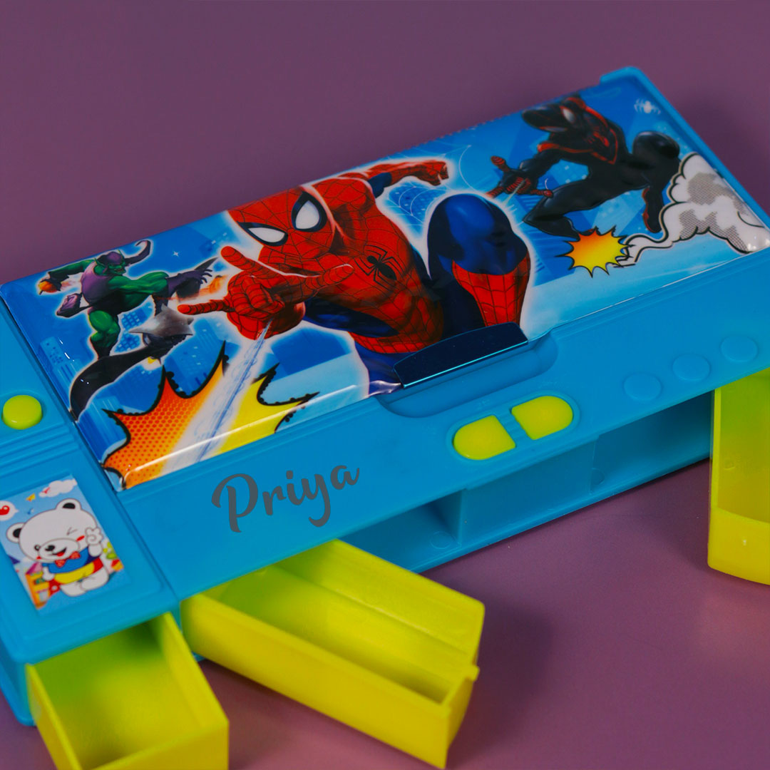 In addition, Transform school days into magical adventures with the Spiderman Pencil Box! Personalize it with your child's name for a special touch. Of Course, featuring high-quality construction, spacious compartments, and a charming Blue & yellow design, it's perfect for organizing stationery essentials. Order now and make school both fun and organized!