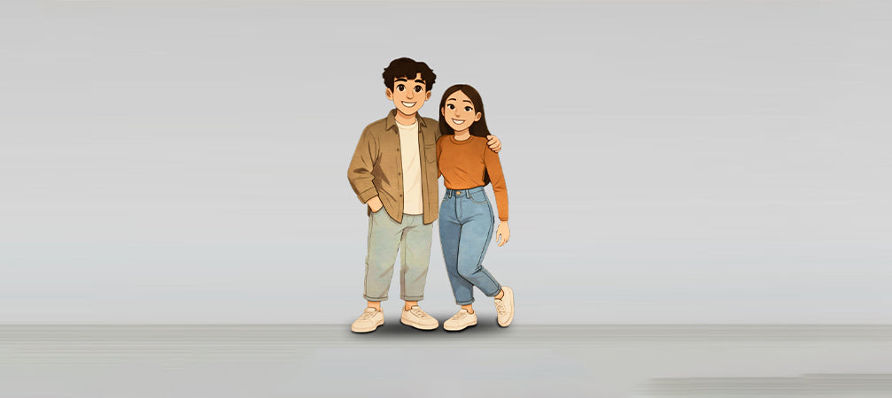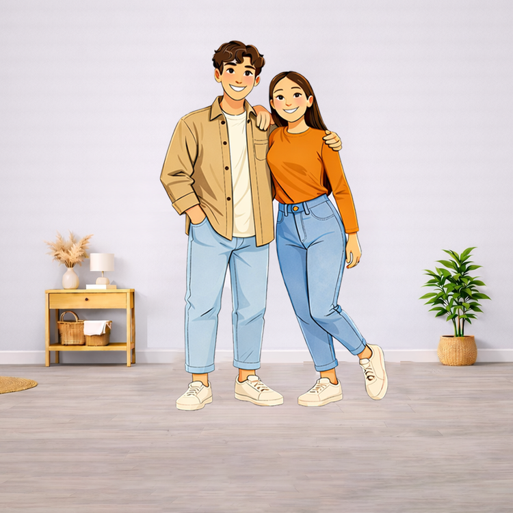 Yes, Send any clear couple photo — we’ll turn it into cute illustrated art.