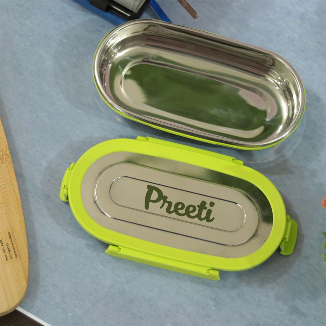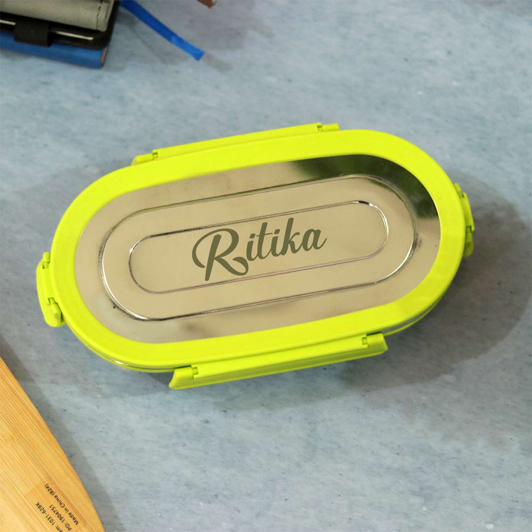 In today's fast-moving world, having a reliable lunch box is essential for carrying our favorite homemade meals wherever we go. The Custom Stainless Steel Airtight, Leak-Proof Tiffin Lunch Box - 650 ml, Green, is the perfect solution for individuals looking for both style and functionality in their lunchware. It is customized with your name. It is suitable for offices, schools, and picnics.