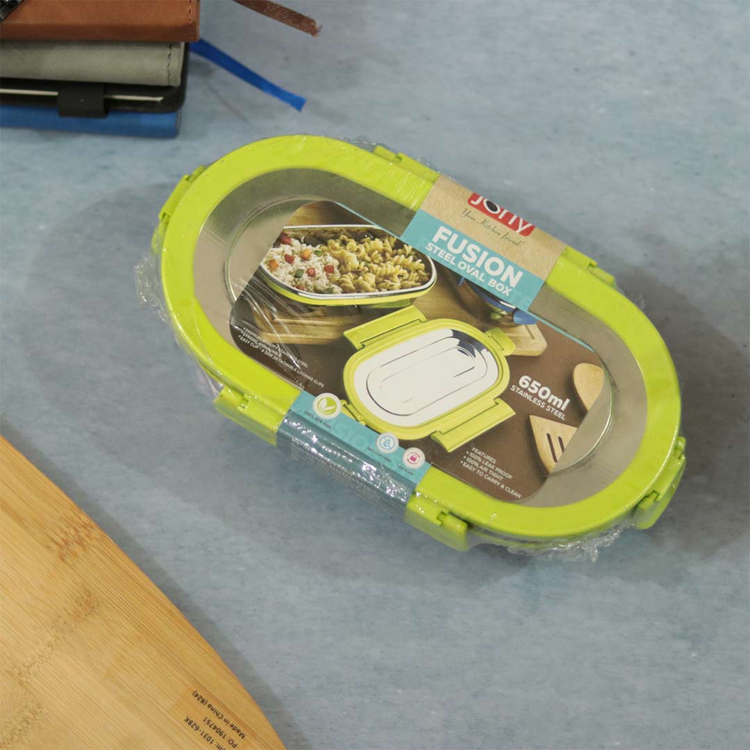 With its oval shape and vibrant green color, our stainless steel lunch box stands out from the crowd. Its compact size fits easily into office bags, laptop bags, and backpacks, making it ideal for on-the-go professionals and students alike.