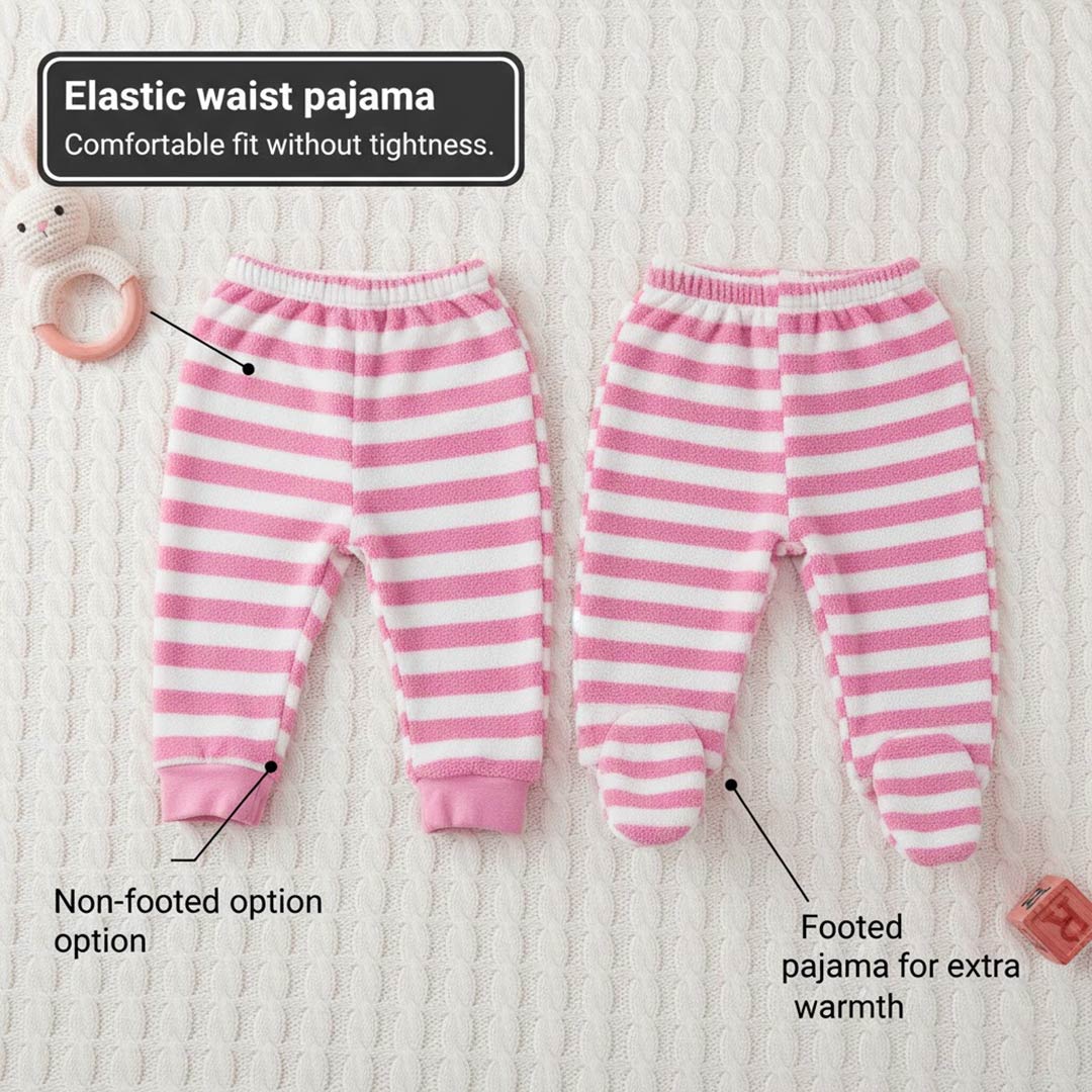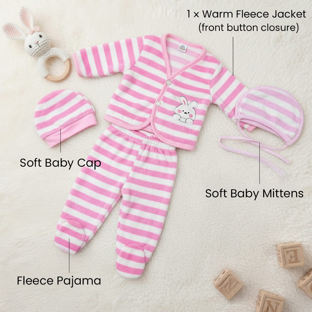 Pink Striped Baby Winter Fleece Clothing Set – 4 Pc