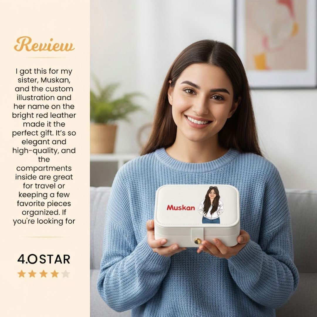 This adorable jewellery box comes personalized with your name and custom Ghibli-style art, making it the sweetest gift for birthdays, anniversaries, or everyday use. Soft-touch leather, spacious inside, and beautifully crafted — it keeps your precious items safe in the cutest way!