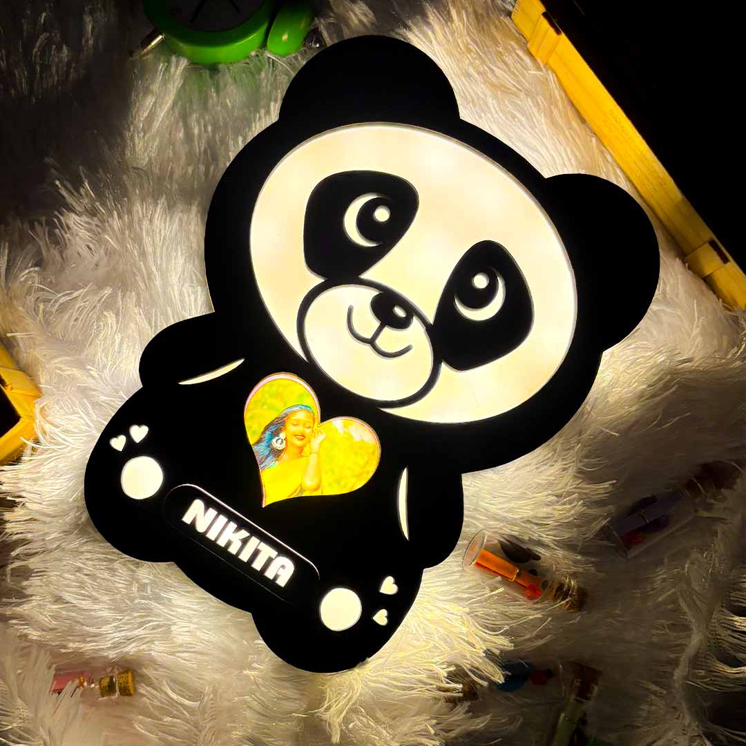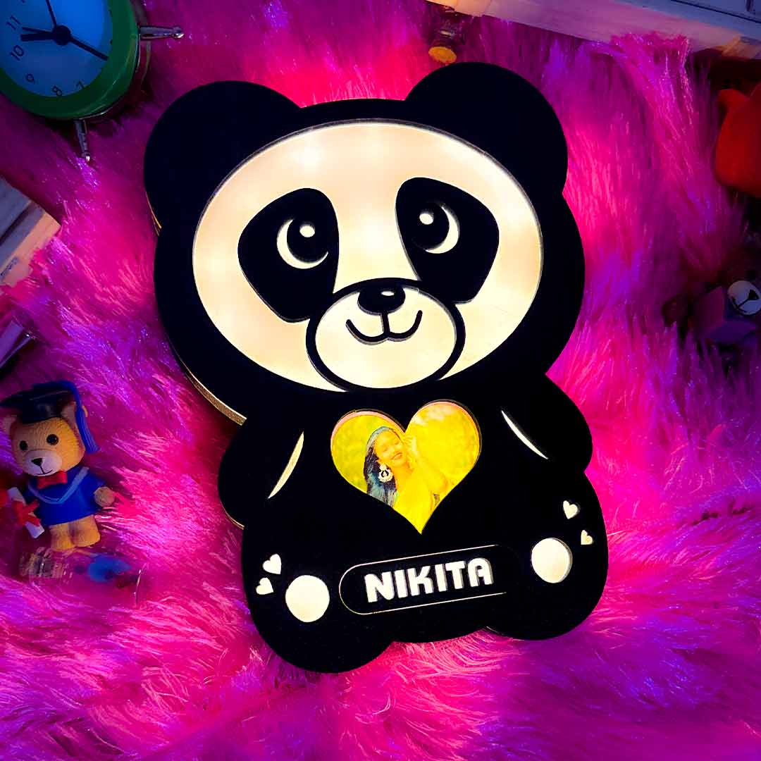 Glowing Panda Lamp with Photo & Name - Valentine Day
