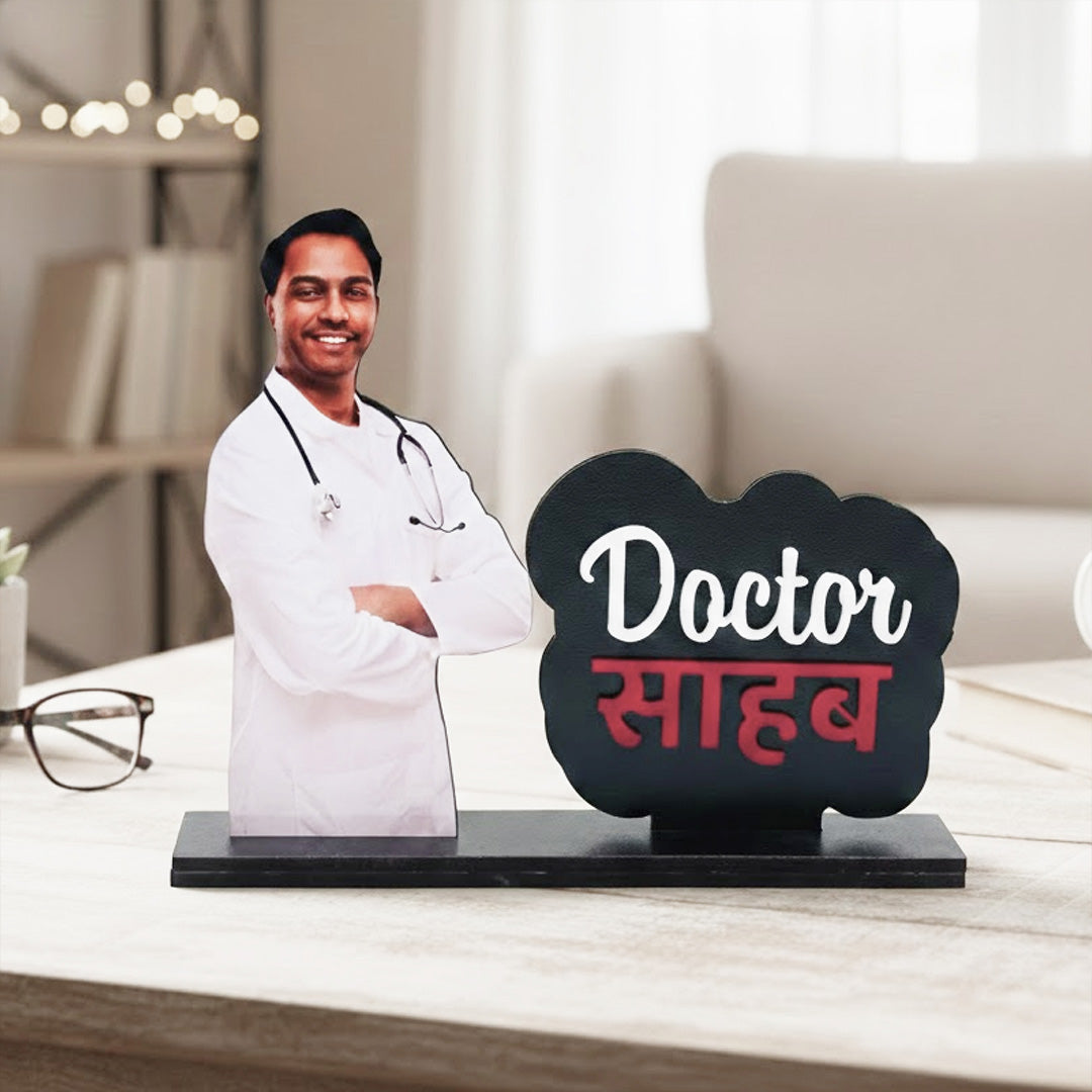 Personalized Doctor Saheb Table Stand – A Proud Gift for Doctors (6×7 Inch)
